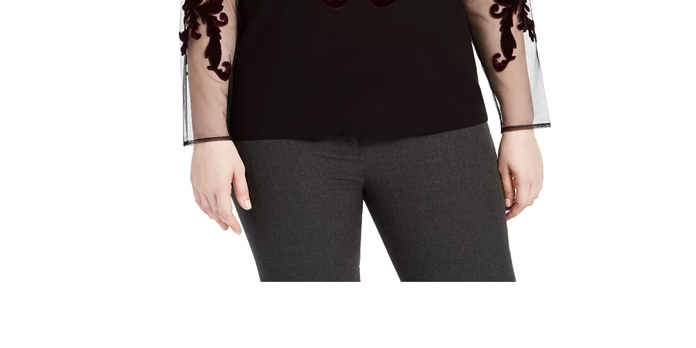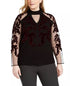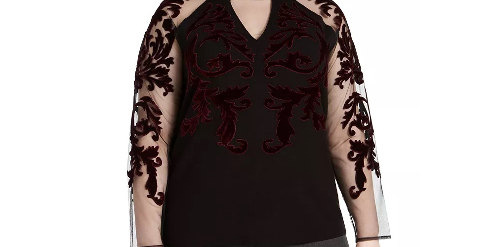 INC International Concepts Women's Velvet Flocked Mesh Sleeve Sweater Black Size 2X