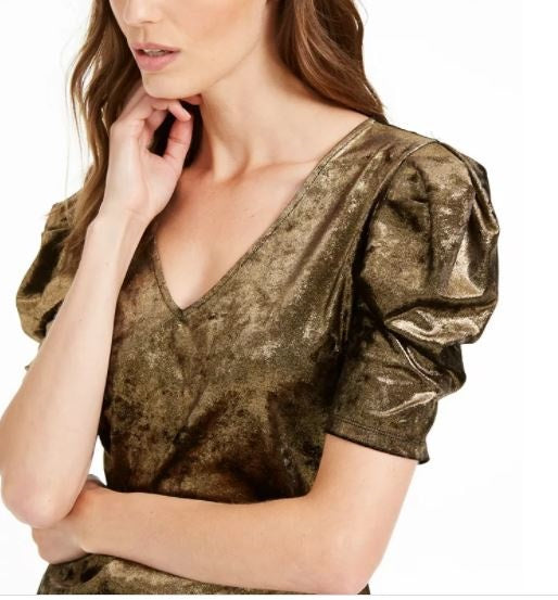 INC International Concepts Women's Velvet Puff Sleeve Top Gold Size X-Small