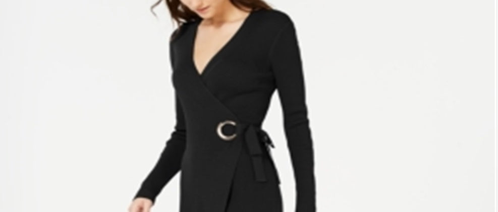 INC International Concepts Women's Wrap Sweater Dress Black Size X-Small