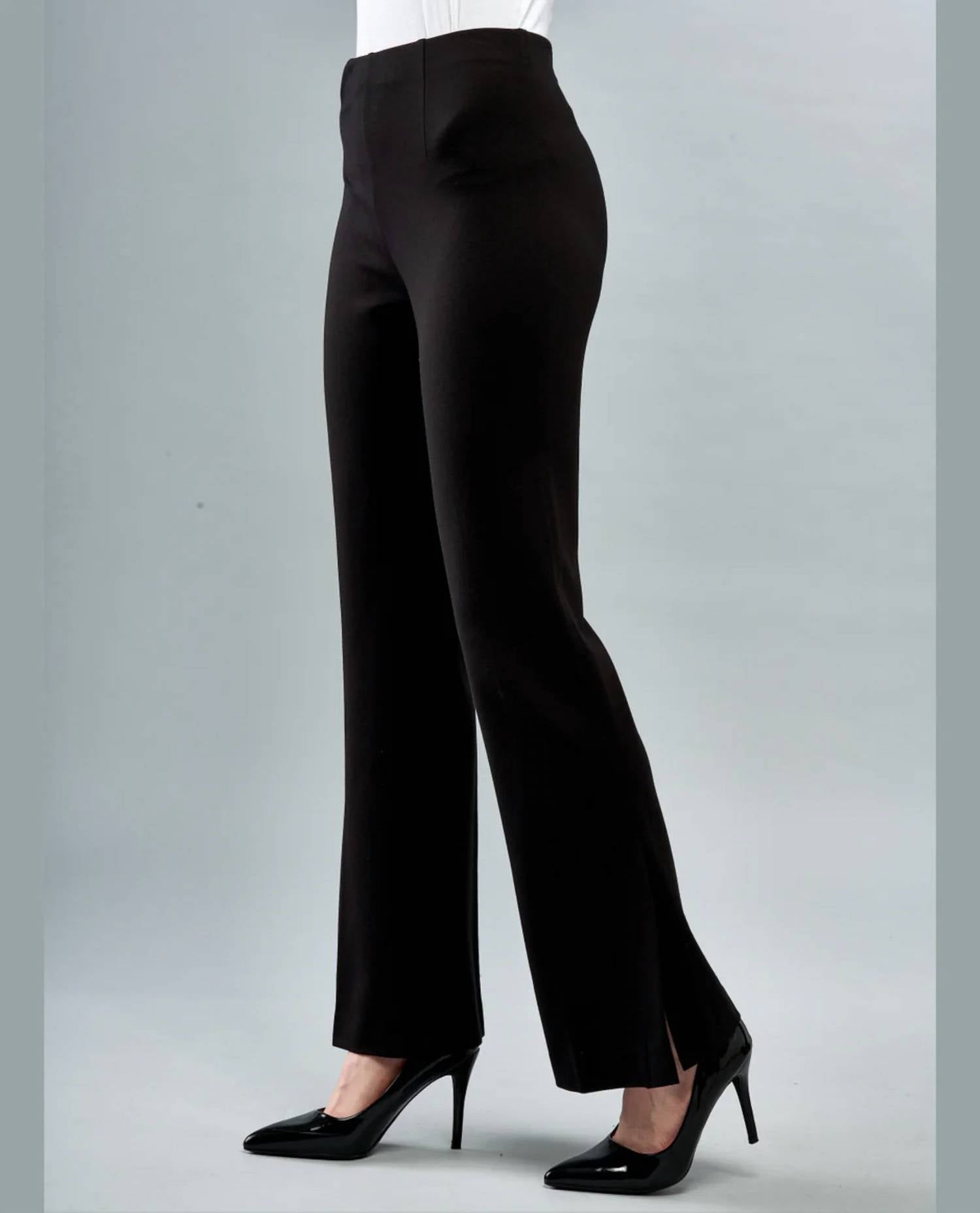 A straightleg pant that workes season after season. Dress these up with your favorite blouse or keep it casual with your go-to tee. Meet the Solid Scuba Pant by Insight, a sleek and comfortable addition to your wardrobe. These black, full-length straight-leg pants feature a unique wrapped slit at the ankle for a stylish flair. Crafted from 67% Rayon, 29% Nylon, and 4% Spandex, they offer a comfortable slim fit, concealed with a pull-on closure. Care instructions: Machine wash cold and lay flat to dry.