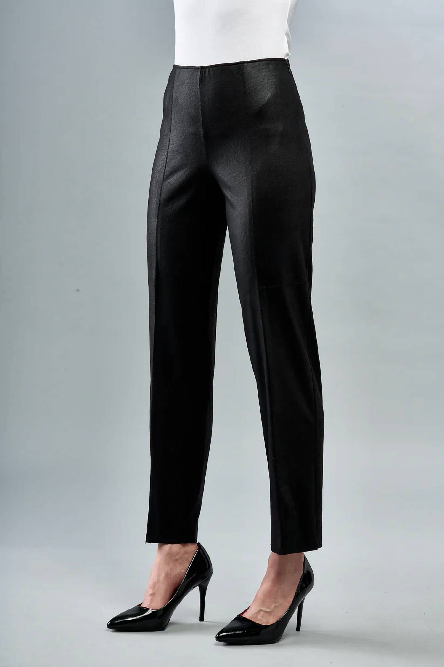 A perfectly tailored straight leg that you'll want in every color! Elevate your wardrobe with the Solid Vegan Pant by Insight, crafted from faux leather for a sustainable yet chic choice. Designed for women, these black pants feature a high rise and slim fit, enhancing your silhouette with their straight leg style. The seamed detailing adds an intriguing texture to the solid design, paired effortlessly with a side zipper closure for a sleek finish. Ideal for both professional and evening settings, these pants offer a versatile and eco-friendly wardrobe option.