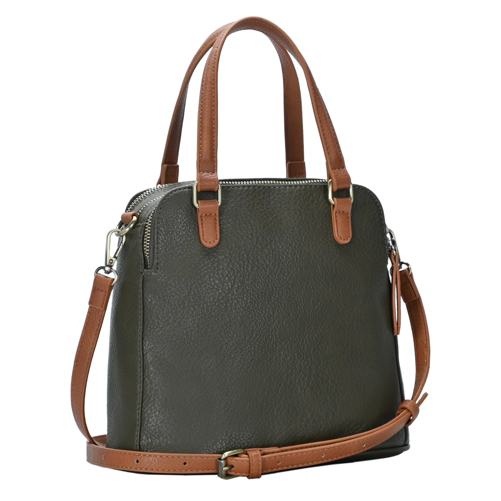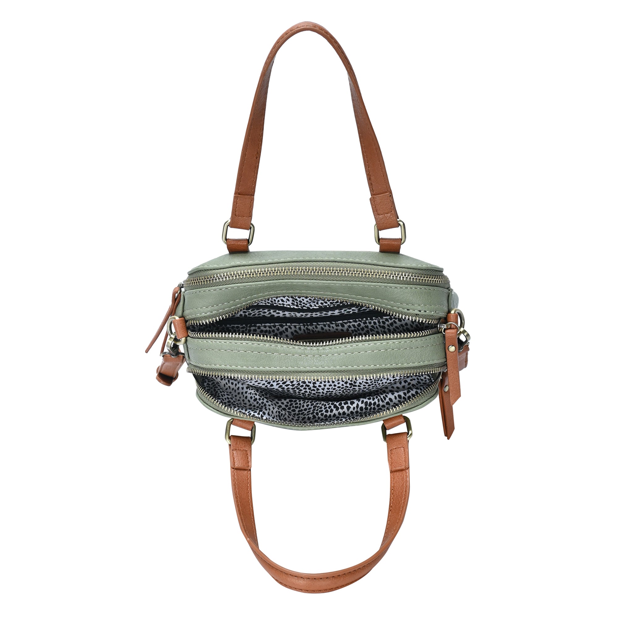 The Iris satchel is made with vegan leather and features three separate compartments, each with a secure top metal zipper. For a more classic experience, the crossbody strap can be detached. This petite bag offers a surprisingly powerful organization tool and plenty of space for all your necessities.