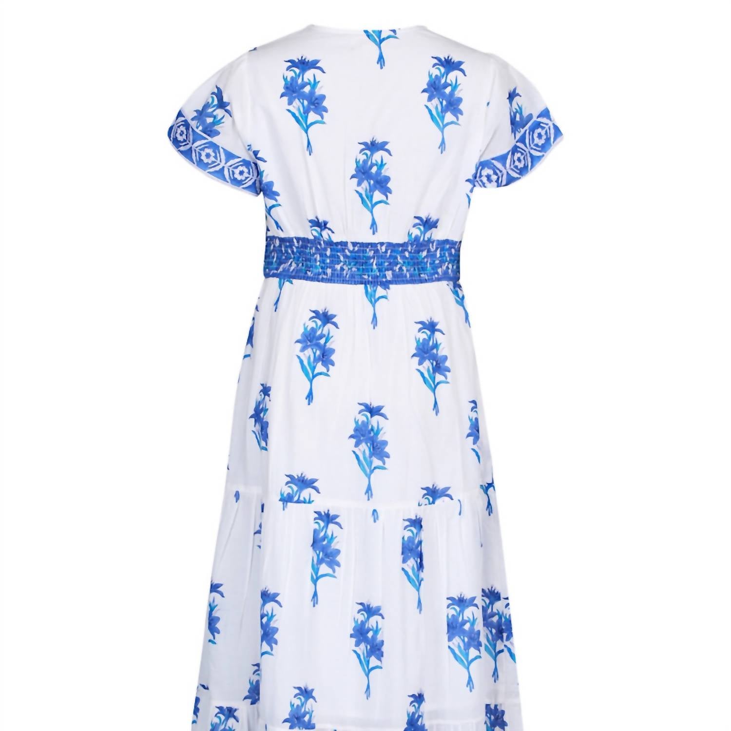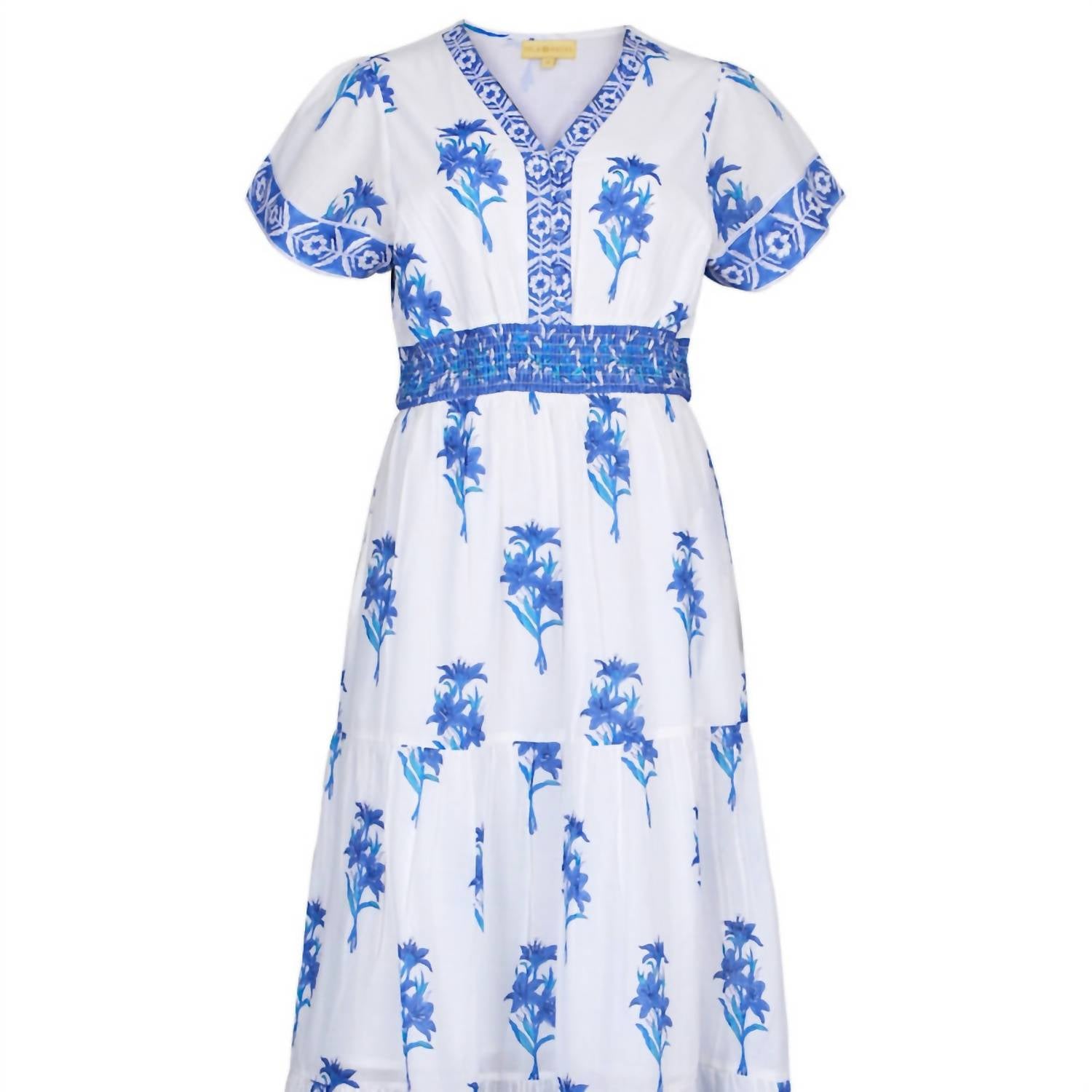 Who doesn't love a good maxi dress? This one you'll be reaching for season after season. Elevate your summer wardrobe with the Valencia Maxi by IslaPayal in Lily Buta Blue, a perfect choice for your holiday party or Hanukkah celebrations. Crafted from premium organic cotton with a comfortable cotton lining, this boho chic dress features short sleeves and a flattering V-neckline. Designed with an A-line silhouette, its soft tiers and gentle elasticized waist offer a feminine, figure-accentuating fit. Made with ethical and sustainable practices, this pull-on maxi dress is easy to care for with hand wash and line dry instructions. Available in sizes XS to XL.