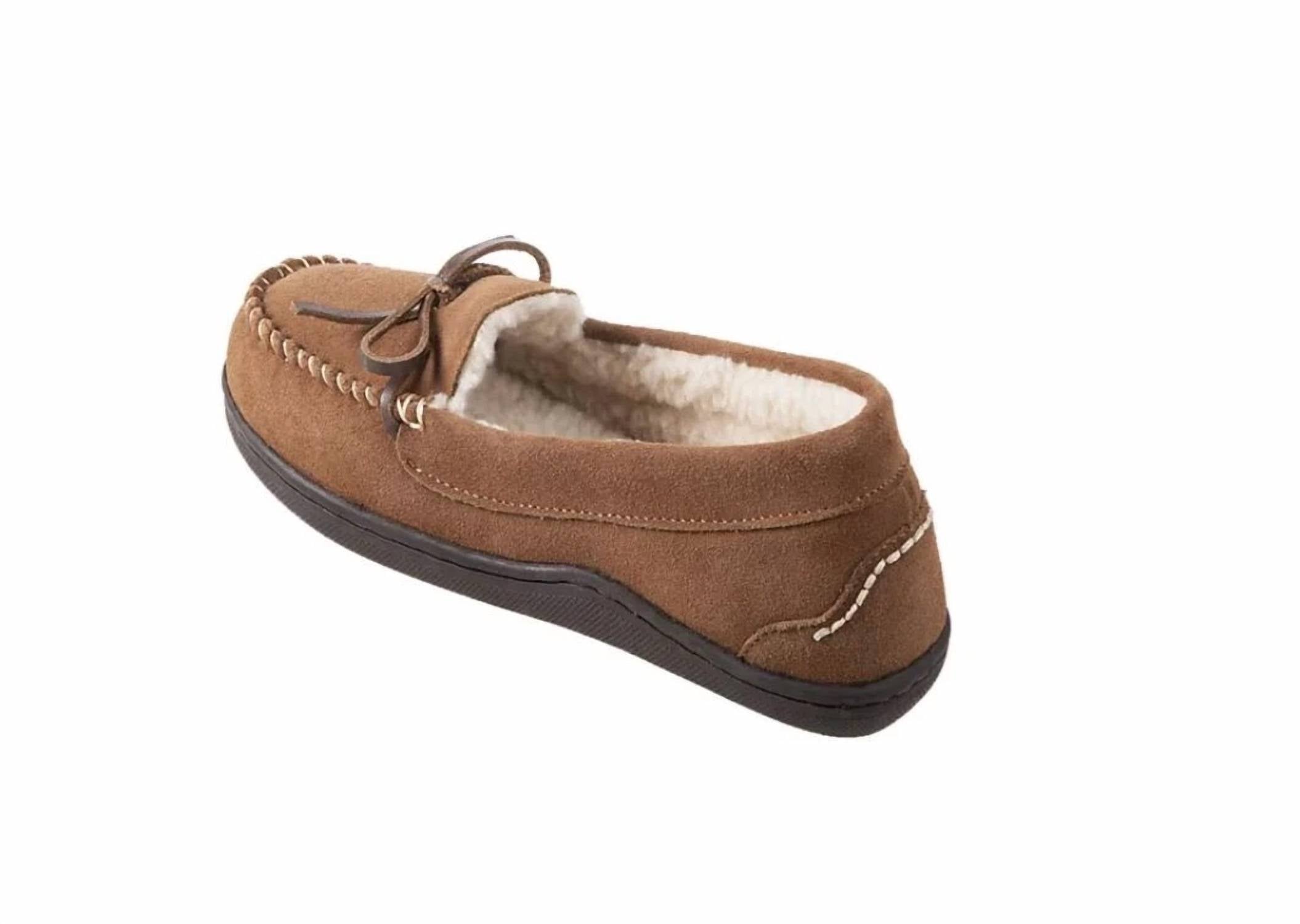 A classic loafer that is both comfortable and polished. Indulge in the ultimate comfort with Isotoner's Women's Genuine Suede Moccasin Slippers in Buckskin, designed for both style and functionality. Made from genuine suede, these slippers feature a fluffy faux shearling lining for luxurious softness and a cushioned memory foam insole that molds to your foot's shape, ensuring a custom fit. The versatile indoor/outdoor outsole coupled with a platform heel ensures you stay comfortable and supported all day long. These slippers are the perfect travel companion for fall adventures.