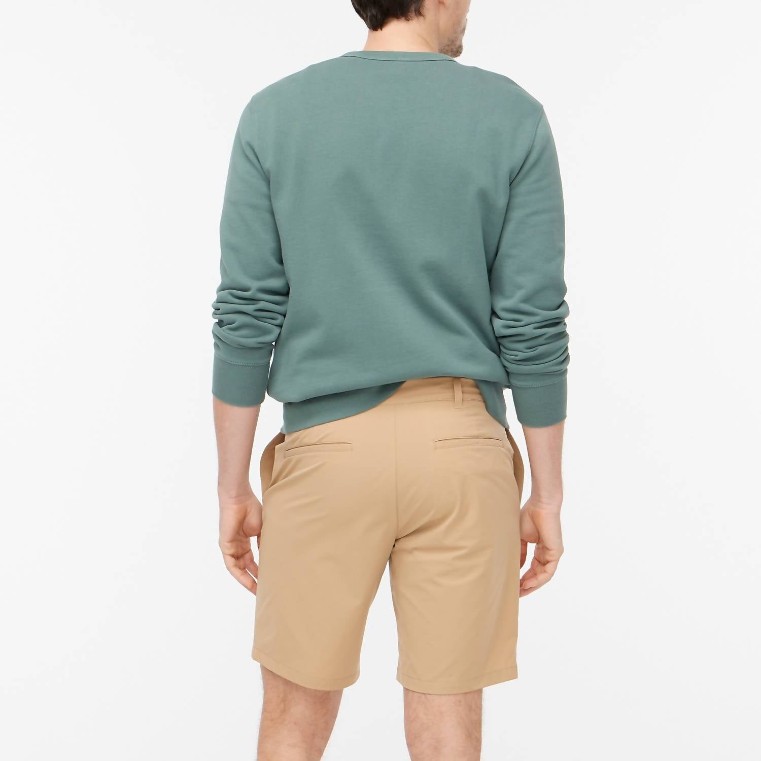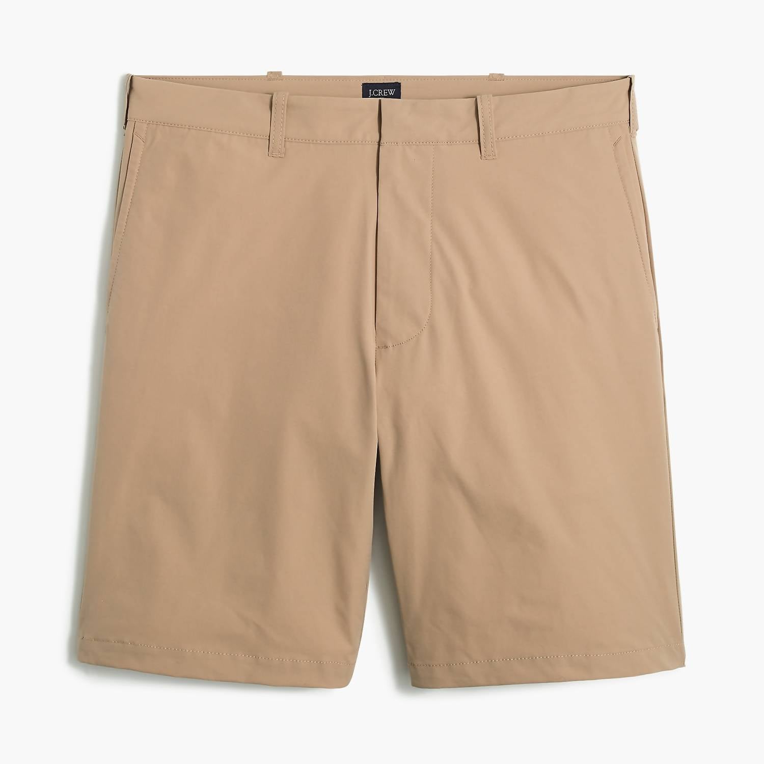 Introducing the 9 Inch Tech Shorts by J.Crew, a must-have in dark khaki for any wardrobe. Crafted in Vietnam, these flat front shorts feature a 9" inseam and are made from 100% elastomultiester and polyester for ultimate comfort and durability. They include convenient pockets and a solid pattern, ensuring practicality and style for men. Closure: Zip closure. Care: Machine wash, tumble dry.