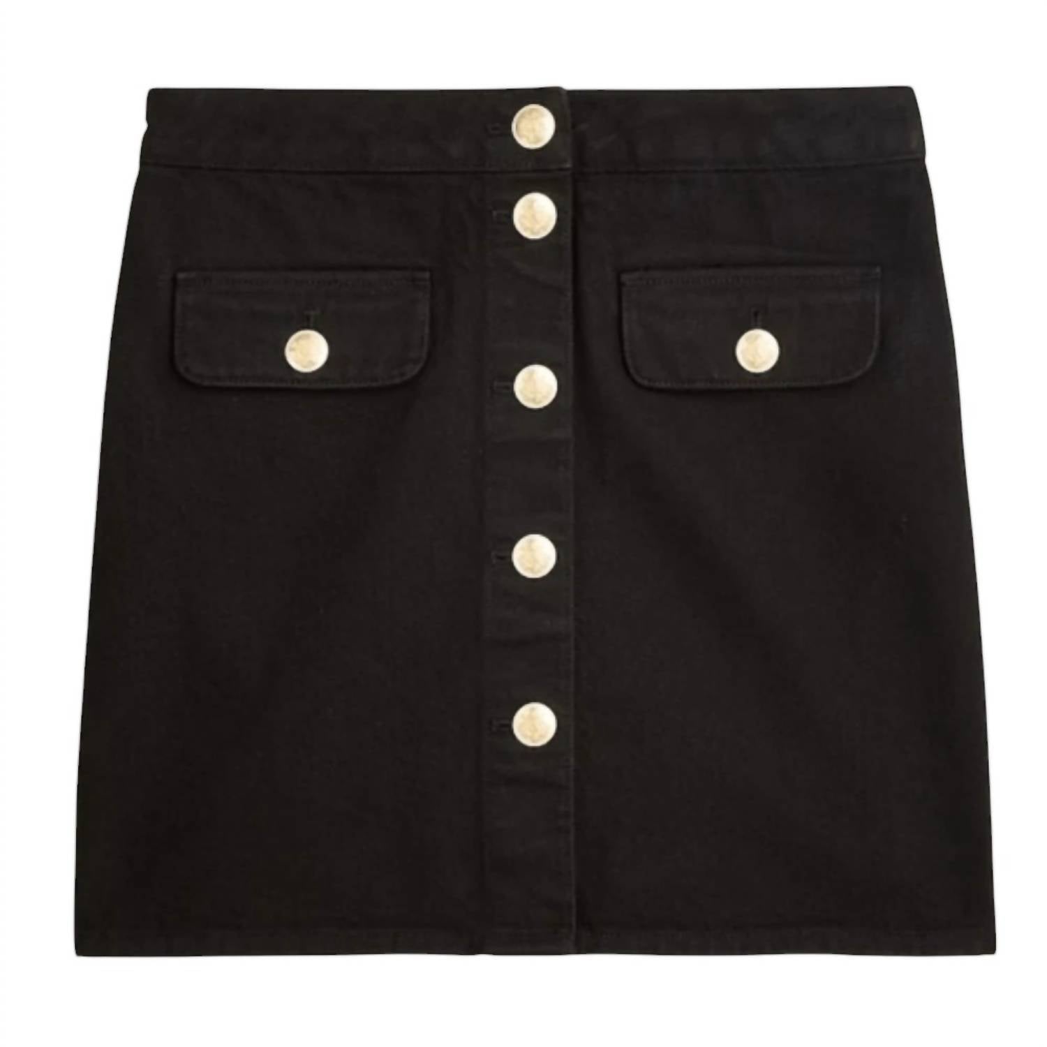 Show just the right amount of leg in this fit flattering mini. Discover the Button-front Denim Mini Skirt by J.Crew, a chic addition to your wardrobe in classic black. Made from 100% cotton denim, this A-line skirt features a button closure and two handy front pockets, perfect for effortless style. Crafted in China, it promises both comfort and durability. For easy maintenance, machine wash and tumble dry to keep this solid pattern mini skirt looking its best.