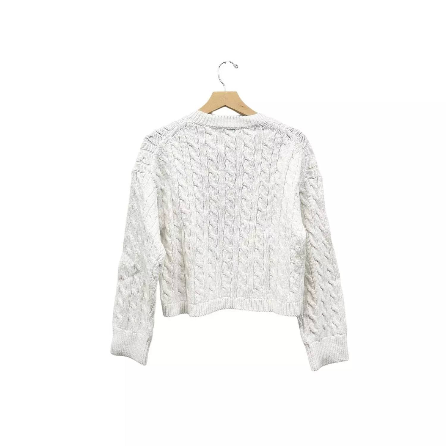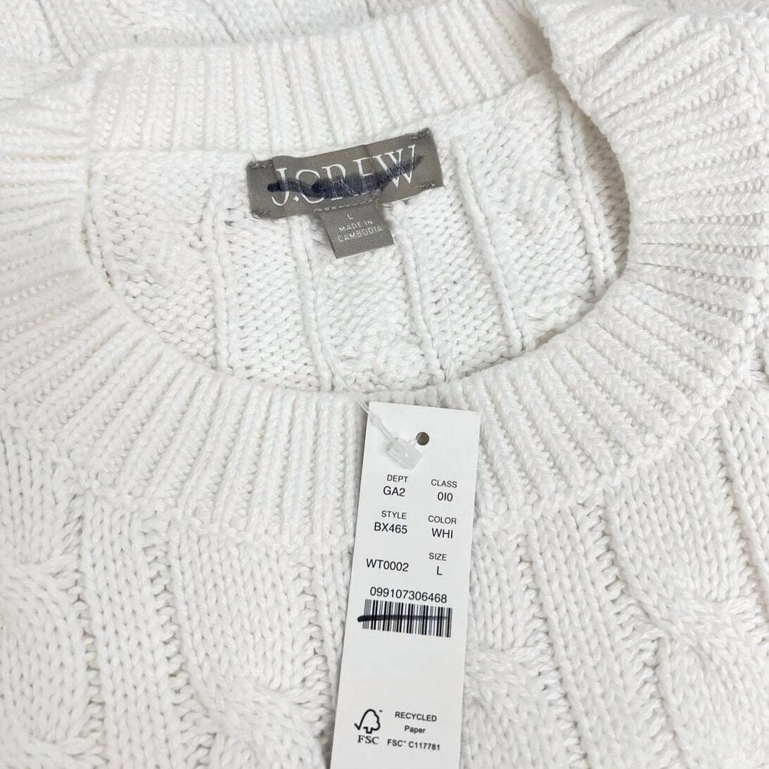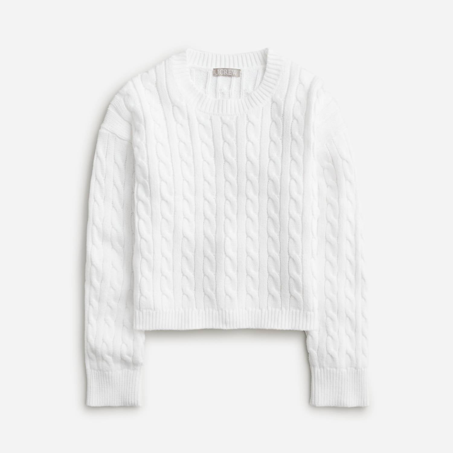 Experience the perfect blend of comfort and style with this trendy crew neck sweater, designed to effortlessly elevate your wardrobe. Pair it with your favorite denim and loafers for the perfect look. Discover the Cable-knit Cropped Sweater by J.Crew, an essential addition to your wardrobe in a textured white design. With long sleeves and crafted from 100% cotton, this sweater offers a relaxed fit that hits at the hip with a garment length of approximately 20 inches. Designed in Cambodia, it features a crewneck and easy pull-on closure for comfortable styling. Care for your sweater effortlessly with machine wash instructions, ensuring its pristine look lasts.
