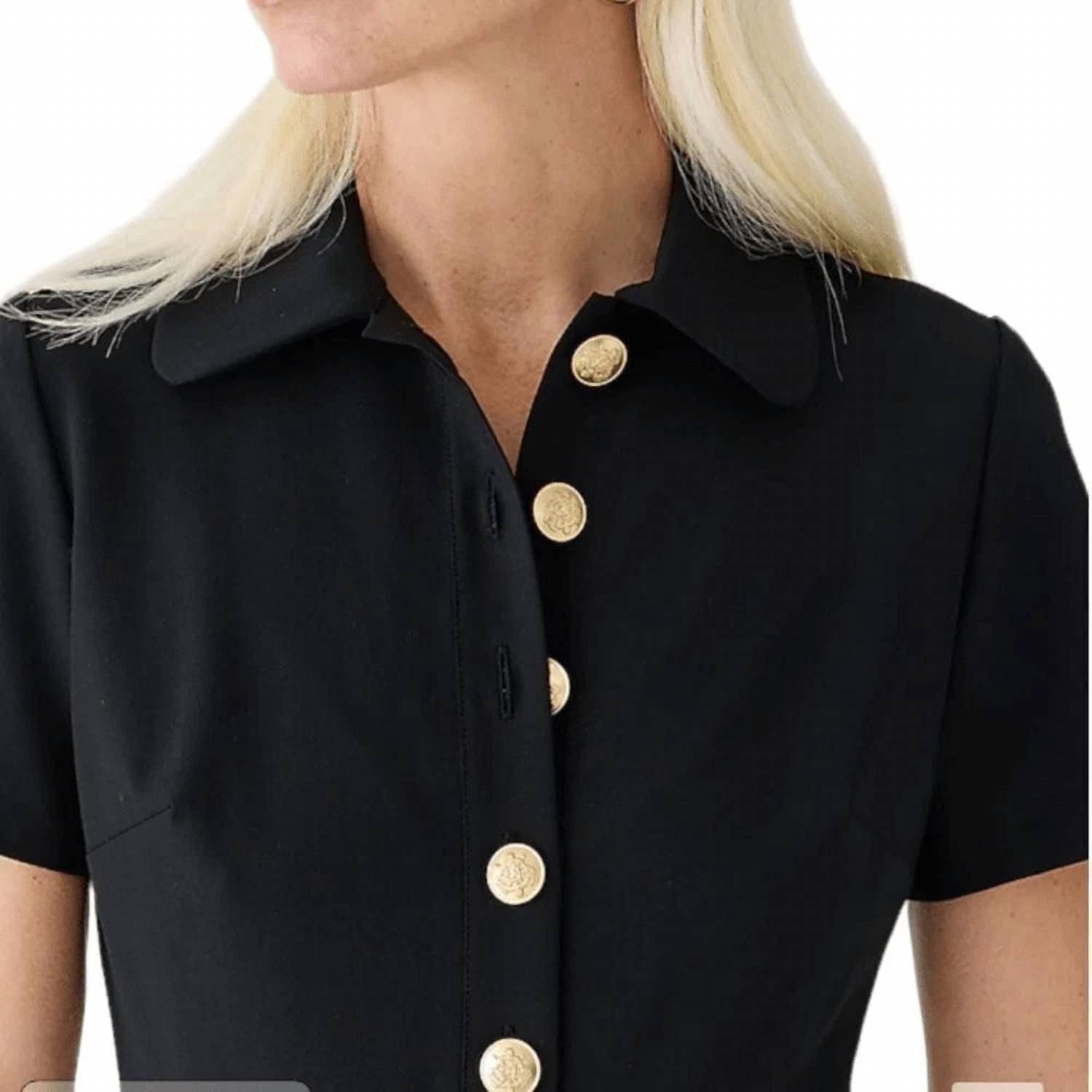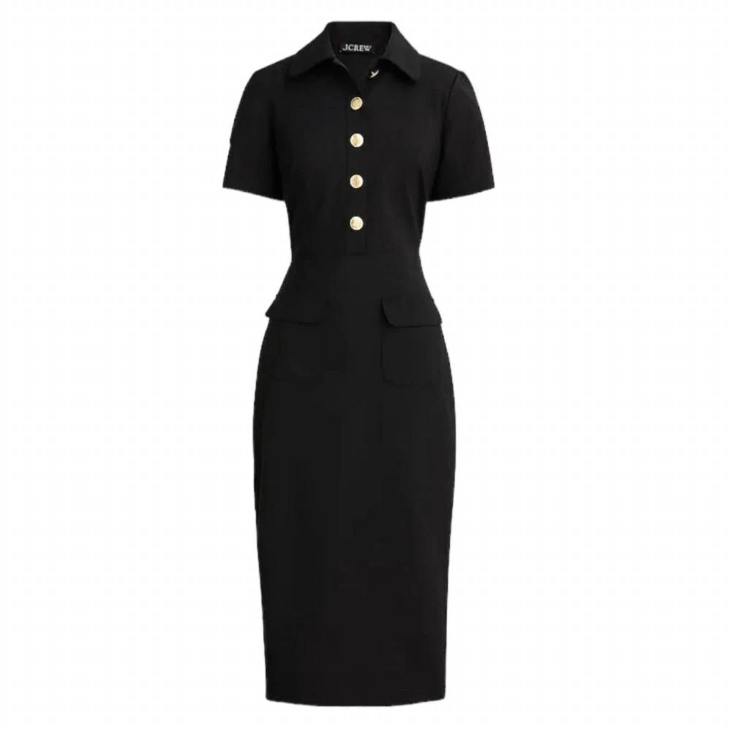 The perfect length dress does exist. Discover elegance with the J.Crew Collared Sheath Dress, designed in a sophisticated black shade. This short-sleeve piece features a classic collar and stylish side zipper closure, with the dress falling above the knee at 45.5 inches. Crafted from a luxurious wool blend (96% wool, 4% elastane), it showcases responsible wool farming practices and is fully lined for added comfort. Originating from the Philippines, this dress requires dry cleaning for optimal care.