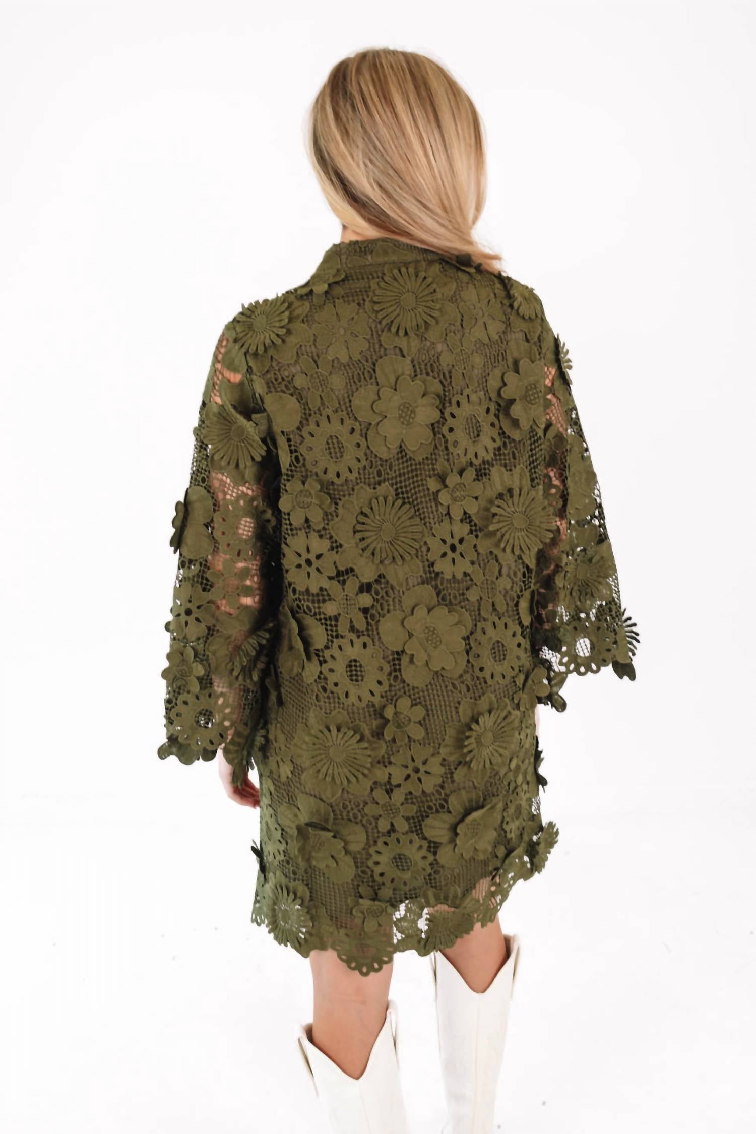 A short and breezy dress for those warmer days. Crafted from 100% polyester, this piece features delicate floral lace detailing for a romantic touch. Designed with a button-up neckline and fully lined for comfort, it offers a chic balance of elegance and wearability.