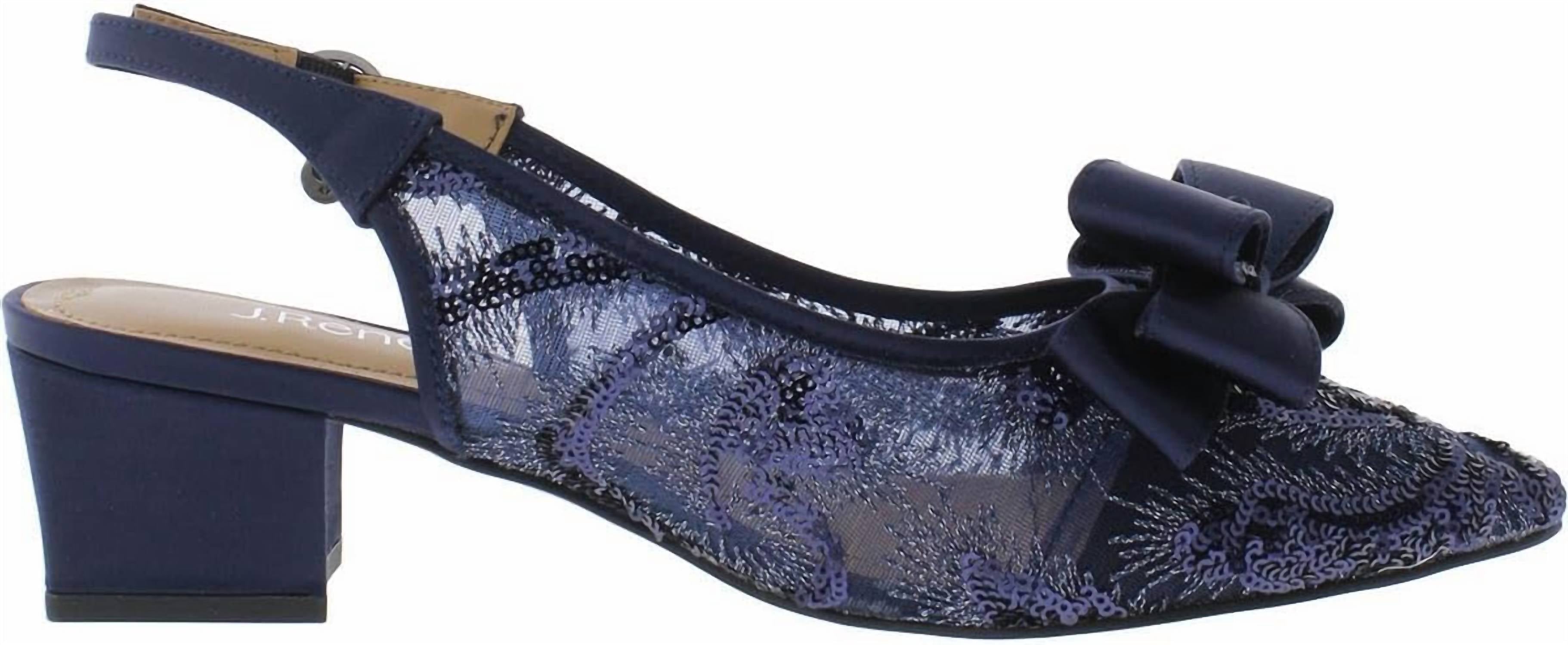 Elevate your footwear collection with the Women's Triata Mesh Pumps by J. Renee, showcasing a sophisticated blend of sequined mesh and satin. Designed with an adjustable buckled sling back strap for a personalized fit, these pumps feature a stylish 2" covered block heel and a chic pointed toe. The satin bow detail adds a touch of quiet luxury, while the memory foam and latex insole ensure comfortable wear. Imported with synthetic lining and outsole, they promise durability and style.
