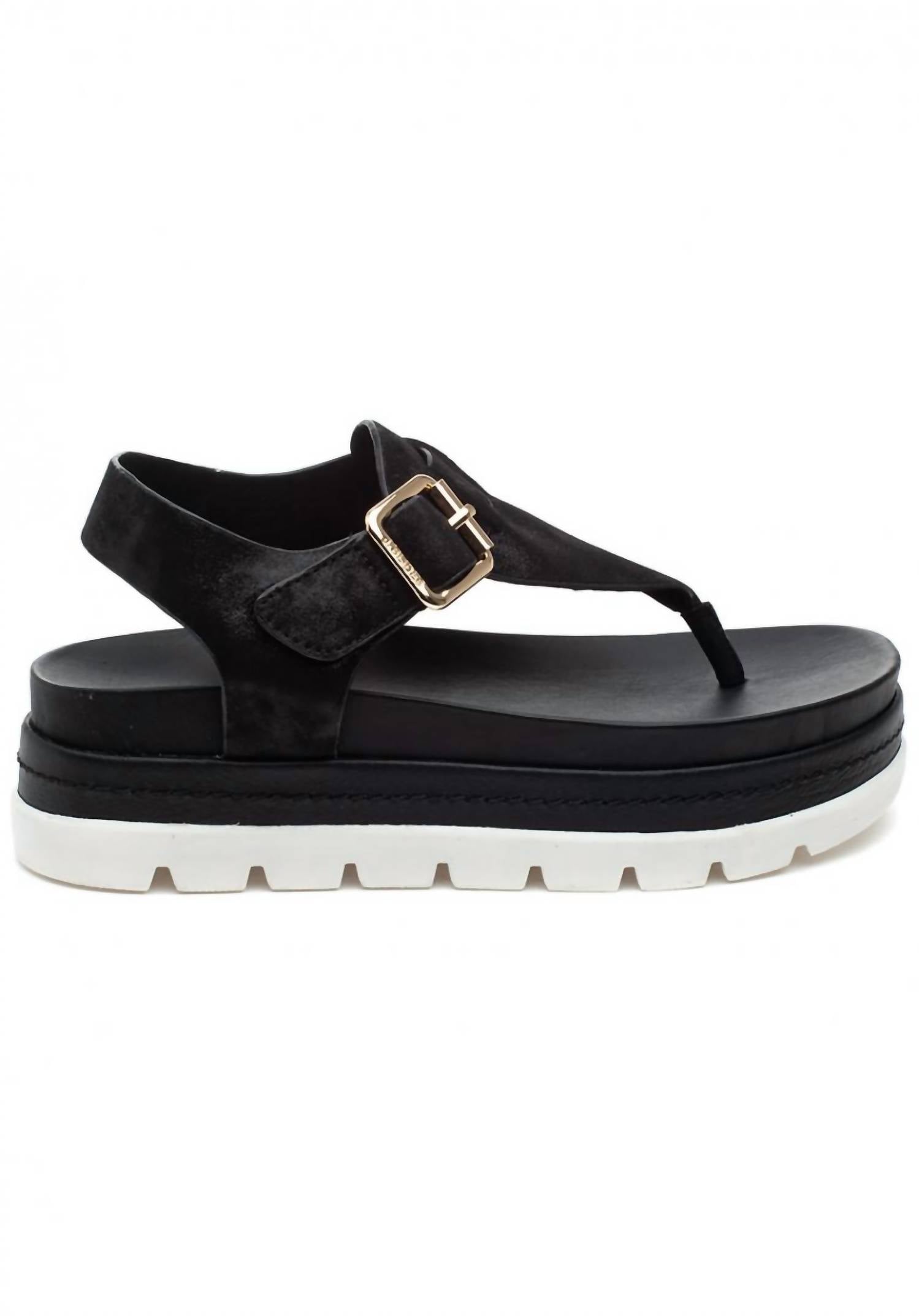 This sandal will take you from brunch to dinner and everything in between. Hook-and-loop strap with buckle. Leather upper. Leather lining. Cushioned footbed. Rubber sole. Approx. 2.5" platform.