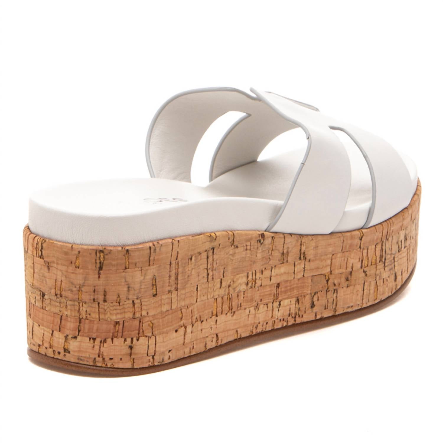 Elevate your summer style with the Women's Queenie Sandal by J/SLIDES in a chic white hue. This open-toe sandal features a contemporary geometric design atop approximately a 2.5-inch natural cork wedge, perfect for making a statement. Crafted with a leather upper and lining, it ensures comfort with its cushioned footbed and durability with a rubber sole. Imported and true to size, this versatile piece is a must-have for any wardrobe.