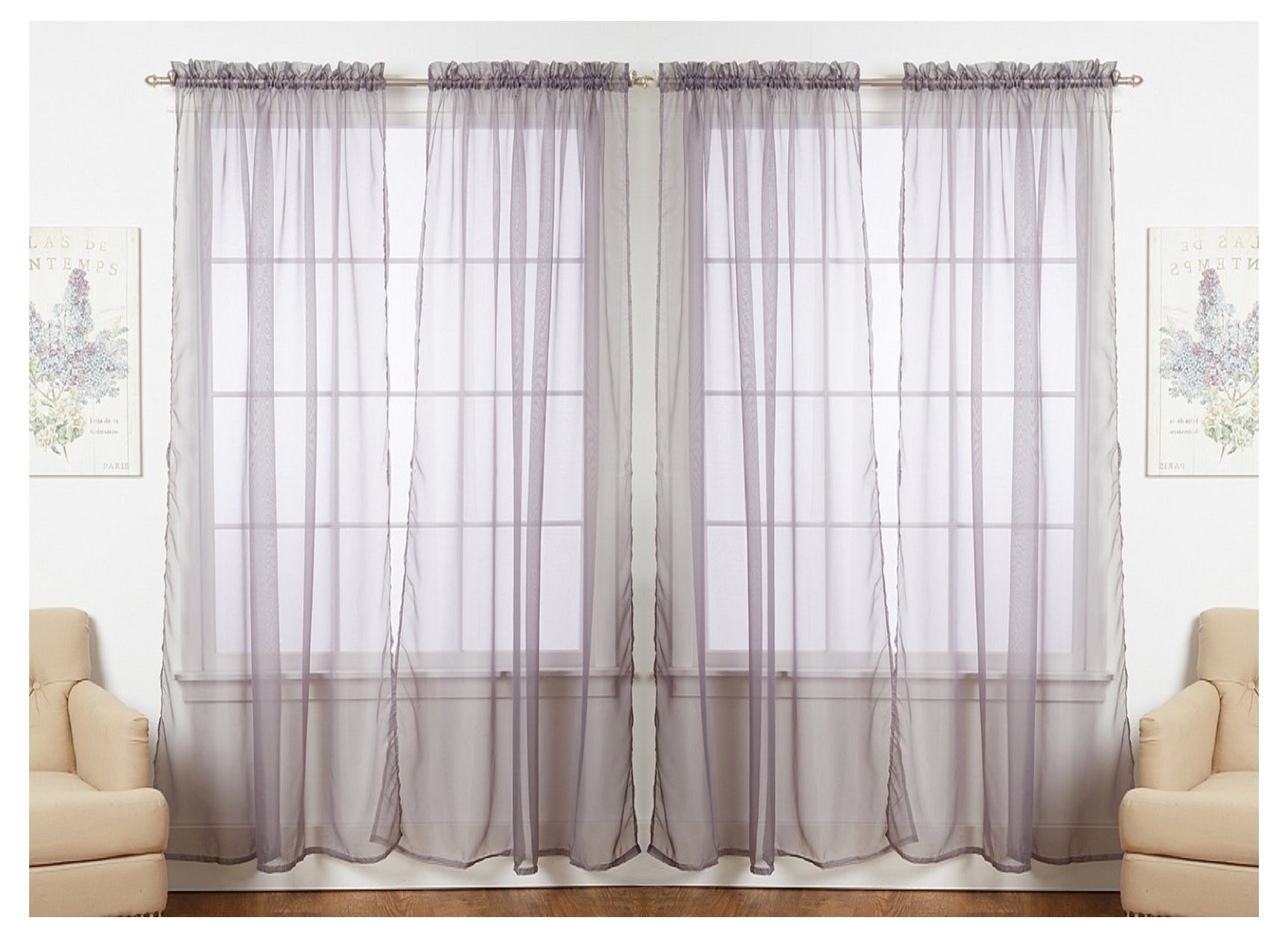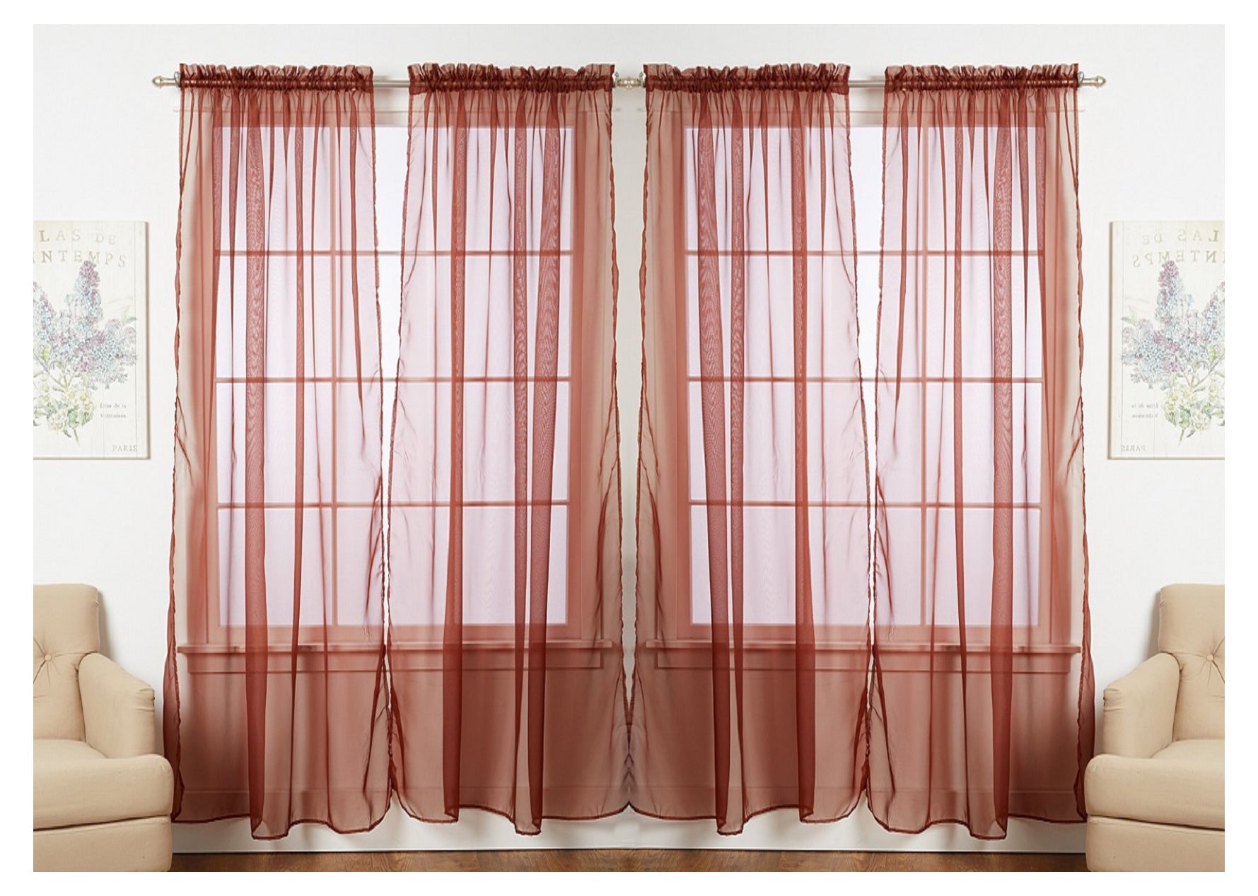 J&V TEXTILES 4-Pack Value: Solid Sheer Window Curtain Panels