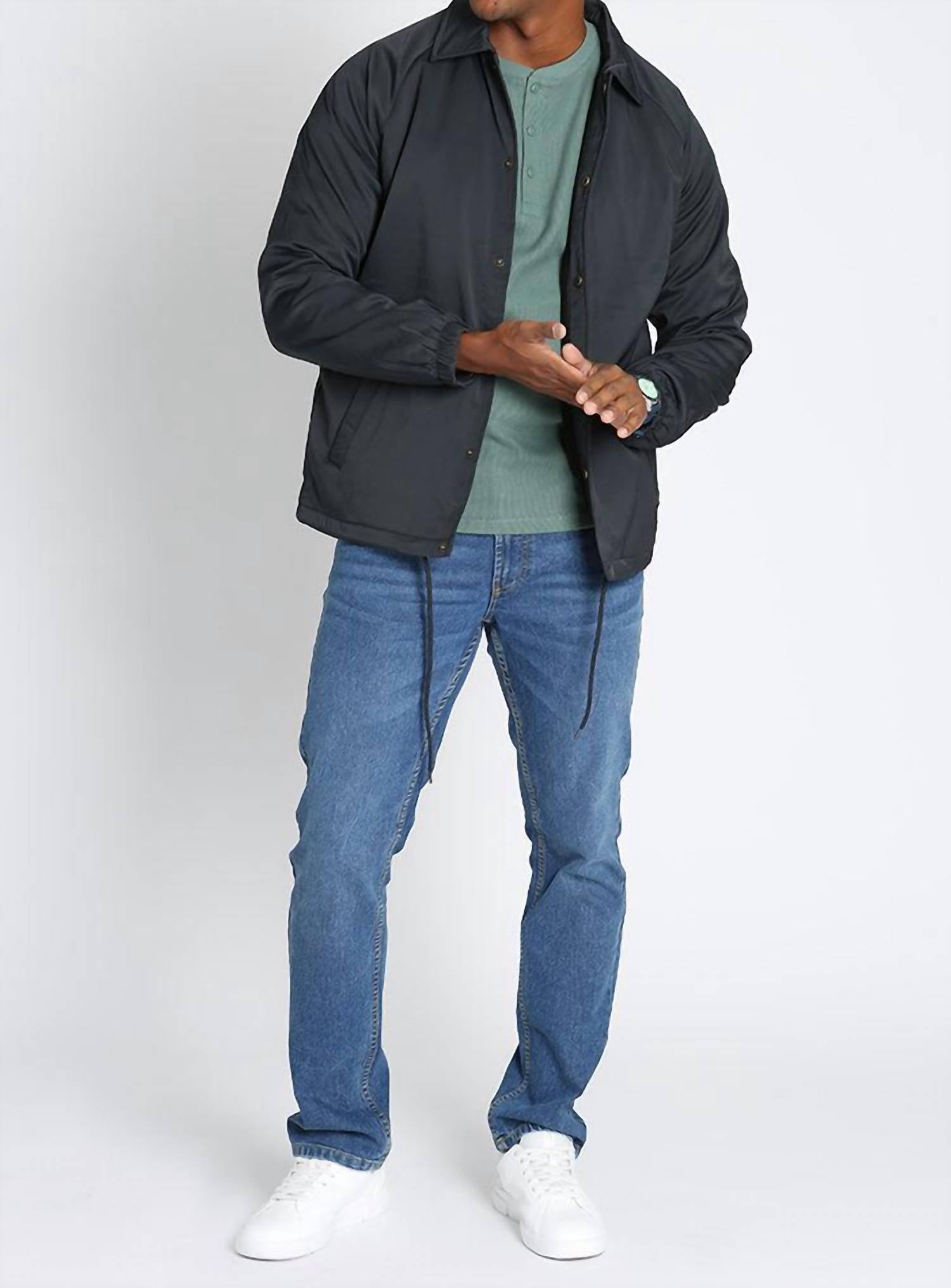 Introducing the Flushing Performance Coach Jacket by JACHS NEW YORK, a sleek piece designed for the modern man. This solid jacket features long sleeves, a collar neckline, and a refined side zipper closure for added style. Made with a shell composition of 96% polyester and 4% spandex, and a 100% polyester lining, it boasts added stretch for improved mobility. Imported and perfect for fall athleisure, this jacket seamlessly combines functionality with trend-driven design.