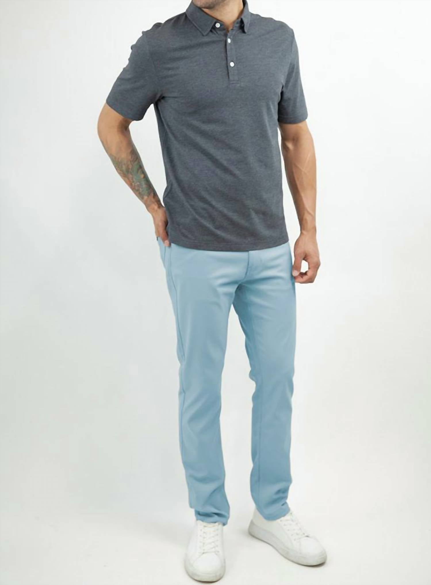 Meet the Poly Spandex Performance Tech Pants by JACHS NEW YORK, expertly crafted for the modern man in sophisticated hue. These feature a 5-pocket design and relaxed fit, complemented by a flexible waistband with silicone grip for added convenience. Made from 96% polyester and 4% spandex, the material ensures ultimate comfort with 4-way ultra stretch and moisture-wicking properties to keep you cool and dry. Imported and designed with a classic straight leg and button closure, these pants are your go-to for minimalist style this summer.