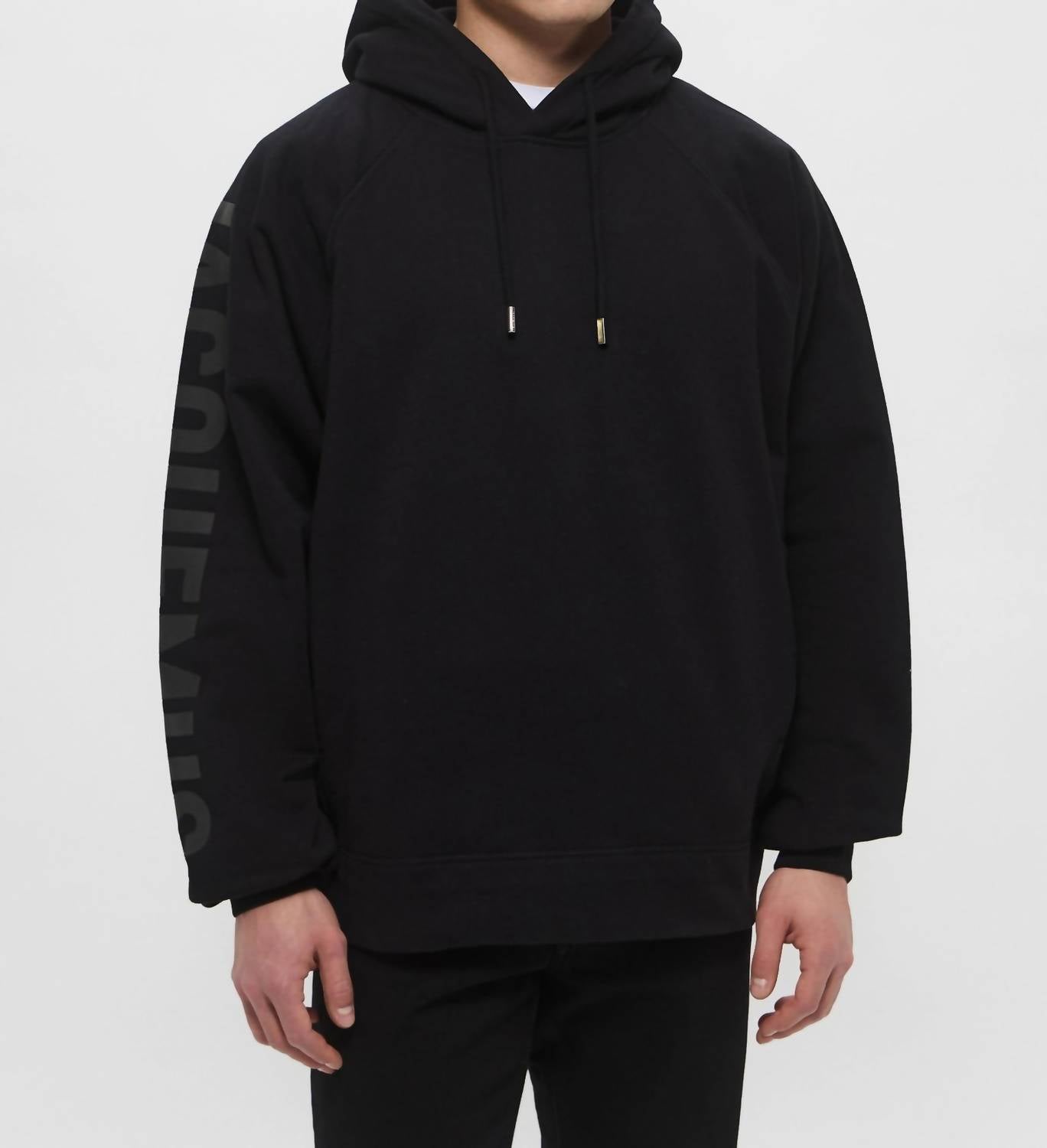 Meet the Jacquemus Le Hoodie Typo, a stylish staple that seamlessly blends comfort with a bold aesthetic. Featuring long sleeves and made entirely from 100% cozy cotton fleece, this hoodie is designed for warmth and everyday wear. It includes a fixed hood and a kangaroo pocket, while a standout applique rubber logo on the chest enhances its fashionable appeal. Closure is via pull-on, and it boasts ribbed trims for added detail. Available in black, this piece is perfect for autumn strolls or relaxed lounging.