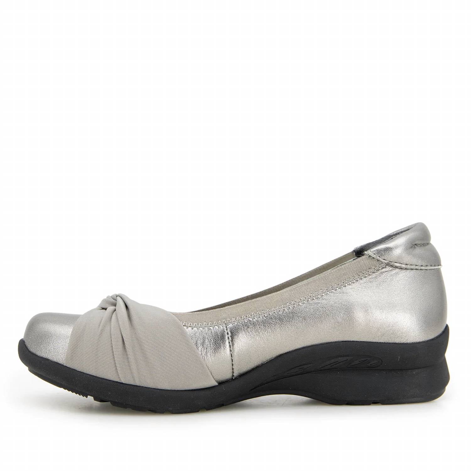 Step into effortless style and comfort. Designed with a round toe. Slip-on flats feature removable contoured insoles and a flexible rubber outsole for all-day comfort. Low block heel adds a subtle lift. APMA accepted. Made from premium leather.