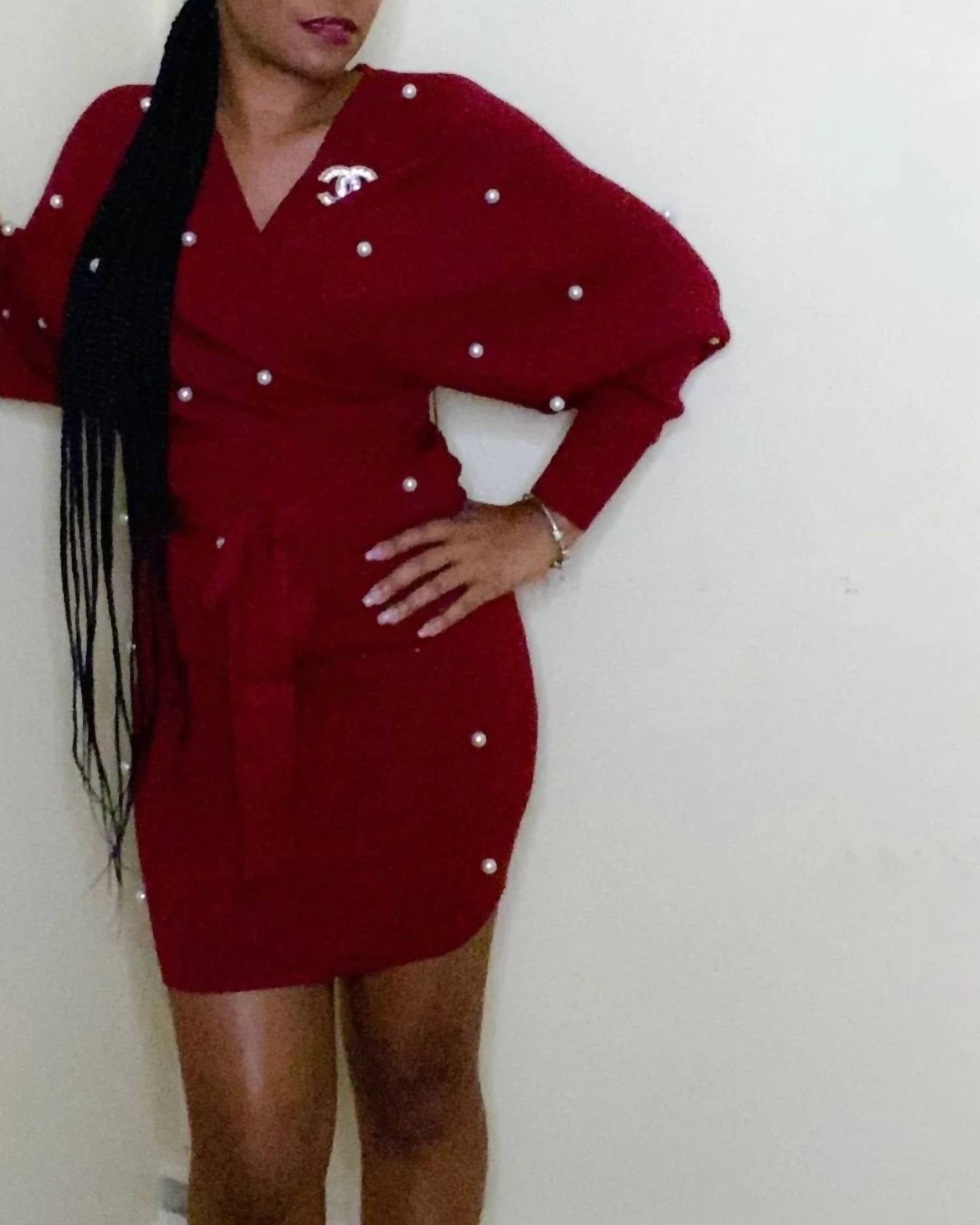 The pefect long sleeve dress for those cooler months. Presenting the Pearl Me Dress by JBLA, an exquisite cranberry statement piece tailored for your next night out. Featuring a long sleeve, textured, bodycon silhouette, this dress embodies quiet luxury with a comfortable cotton blend. This versatile piece includes a belt for customized styling around a V-neckline. Available in sizes Small (2-4), Medium (6-8), and Large (8-11). Care instructions are not applicable.