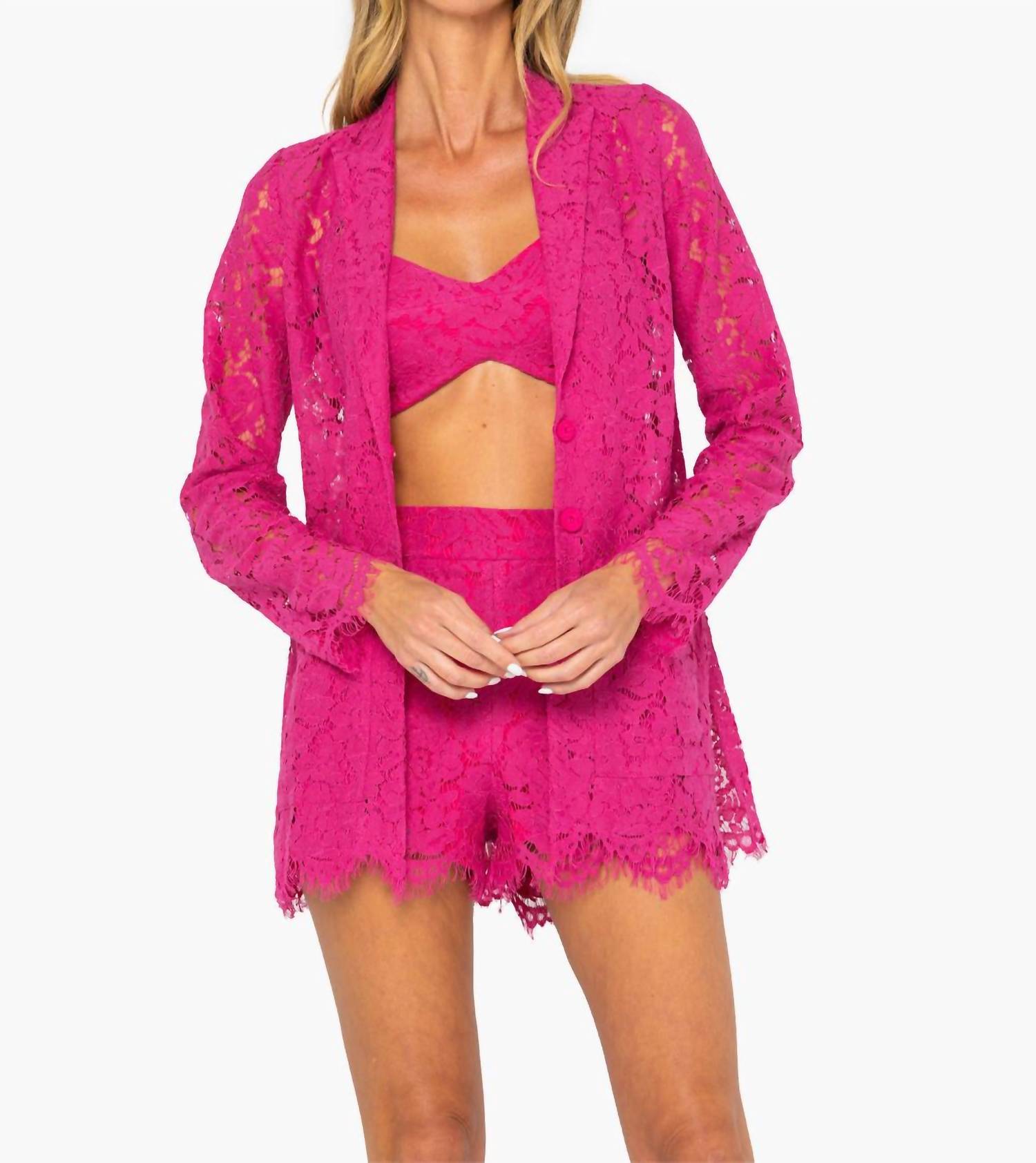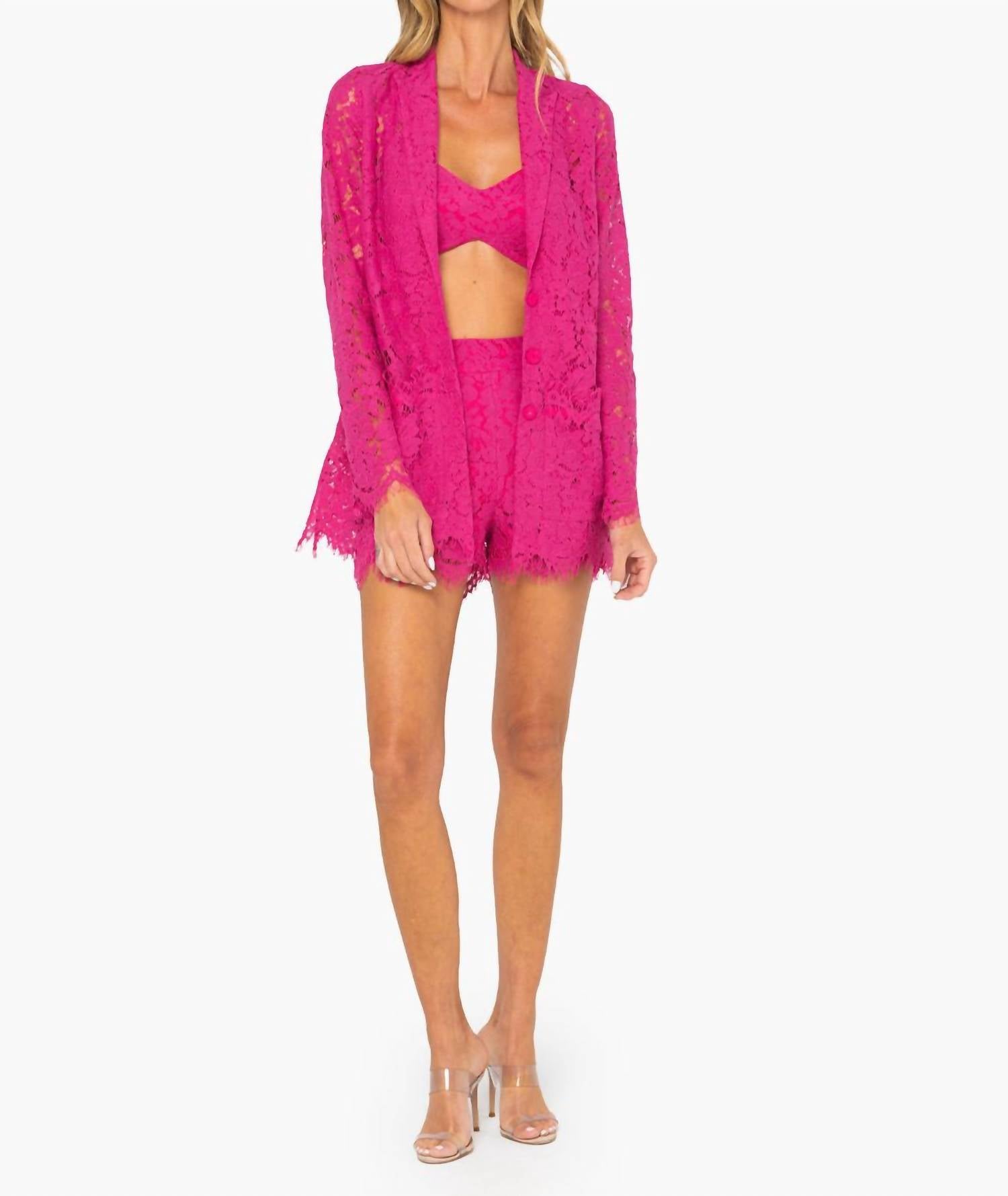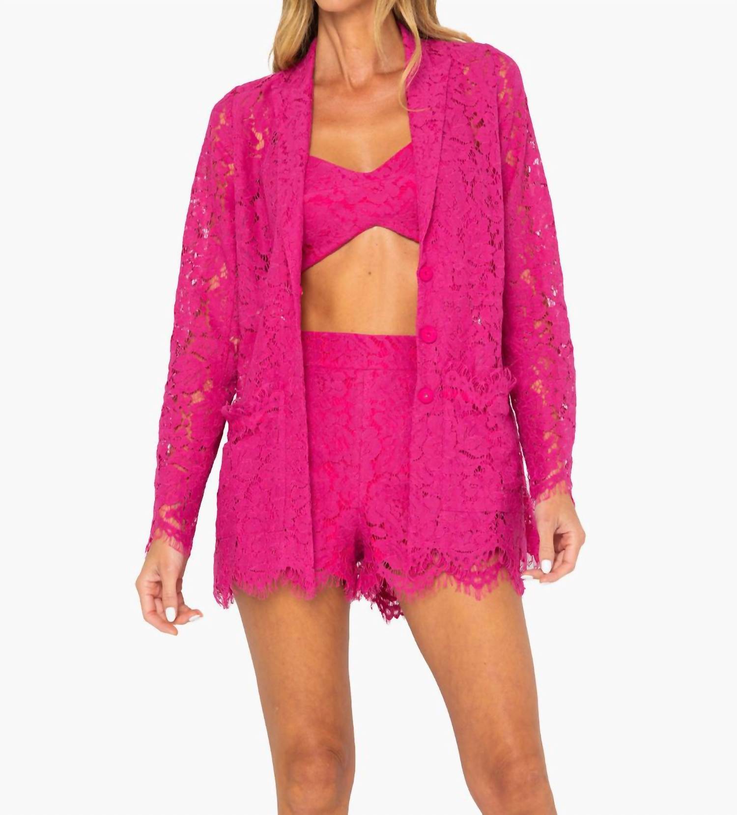 High-waist is here to stay and we especially love this style short. Introducing the Emery Shorts by JBQ, a must-have for any spring wardrobe. These solid fuchsia shorts are made from a comfortable cotton and linen blend, offering a high-waist fit with a zip closure for a sleek look. Care for these breezy shorts with a machine wash cold for lasting quality. The model, at a height of 5'9", is wearing a size XS.