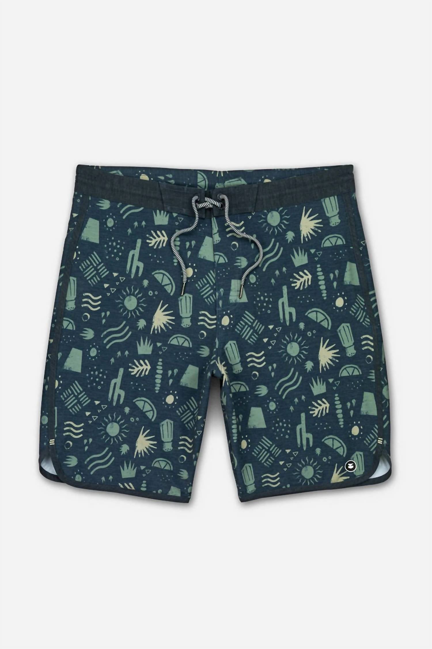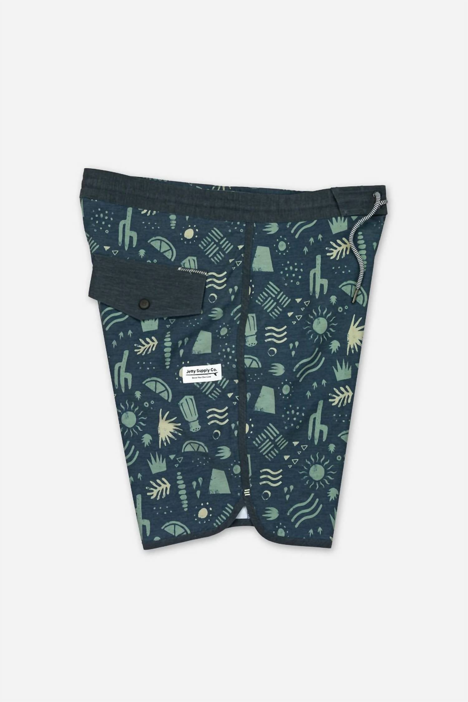 Introducing the Men's Mollusk Boardies by Jetty, designed for ultimate comfort and style at the beach. These board shorts in Agave feature a classic 18" outseam with a scallop leg. Made from a 75% Oystex Recycled Polyester, 17% Cotton, and 8% Spandex blend, they offer eco-friendly, sustainable benefits with moisture-wicking and quick-dry properties. Complete with the LatitudeLock waistband for a perfect fit and an Otis-Base back pocket flap with an elastic key loop, these shorts are your ideal companion for a summer beach day.