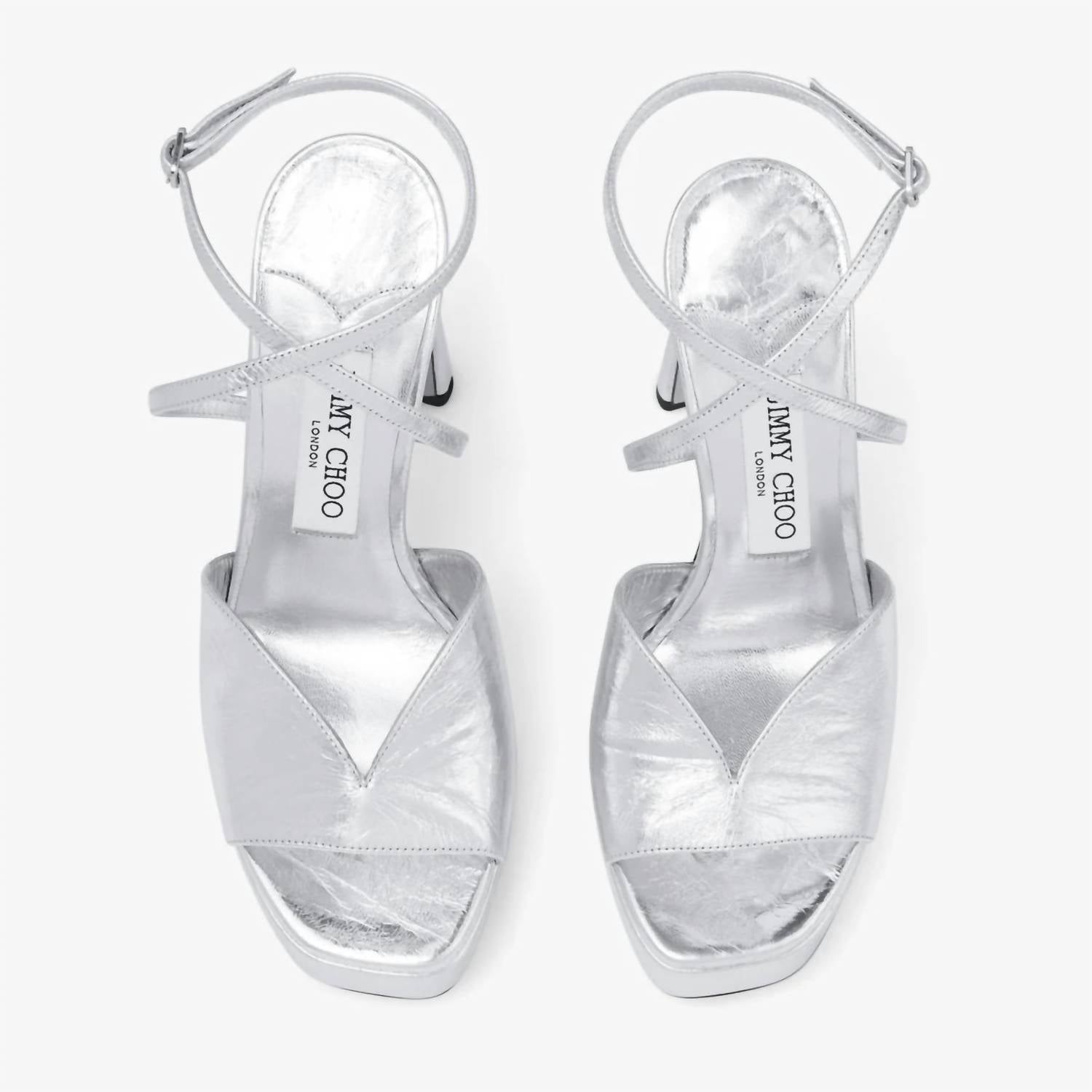 This sandal will take you from brunch to dinner and everything in between. Introducing the Women's Platform Sandal by JIMMY CHOO, an elegant choice for stylish summer evenings. Crafted from vintage metallic leather with a leather upper, lining, and sole, they feature an adjustable cross-over ankle strap for a secure fit. The sandals come with a chic open square toe design and a platform heel height of 125mm (4.9"), with a platform height of 30mm (1.1"). Surely, they're an ideal choice for any evening event or festive occasion with their high-style platform heel design.