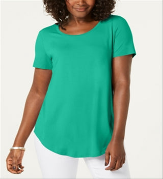 Jm Collection Scoop-Neck Top Green Size M