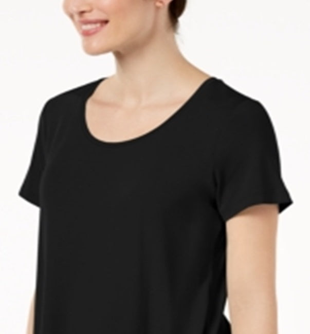 JM Collection Women's T-Shirt Scoop-Neck Top Solid Black Size S