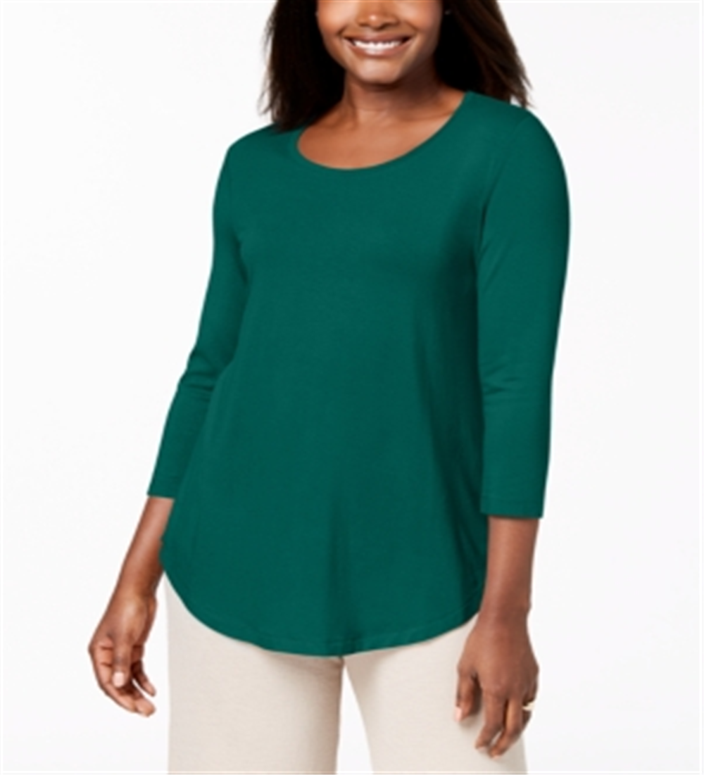 JM Collection Women's 3/4 Sleeve Solid Top Green Size Petite Small