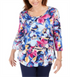 JM Collection Women's Ascension Flora Printed 3/4 Sleeve T-Shirt Blue Size X-Small