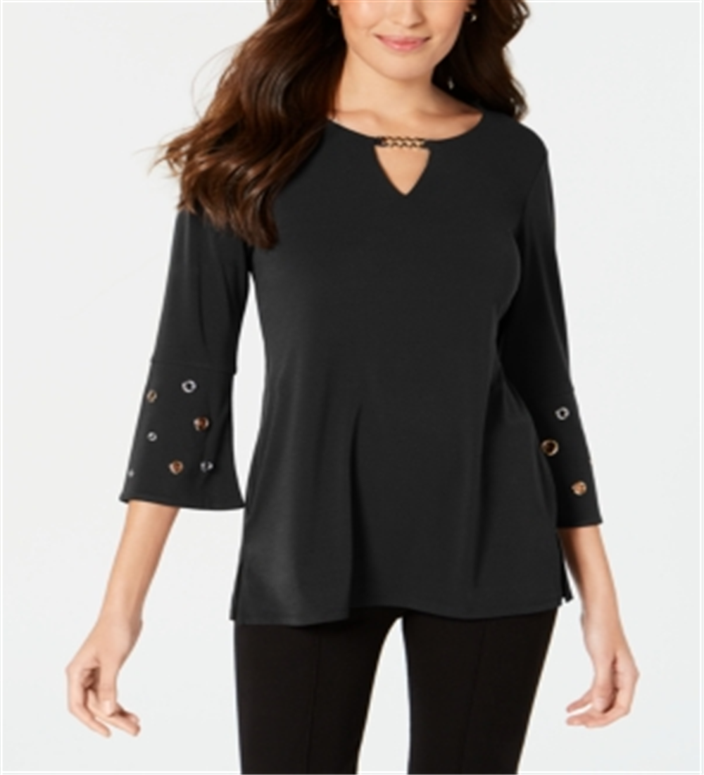 JM Collection Women's Chain Detail Crepe Top Black Size Petite Petite