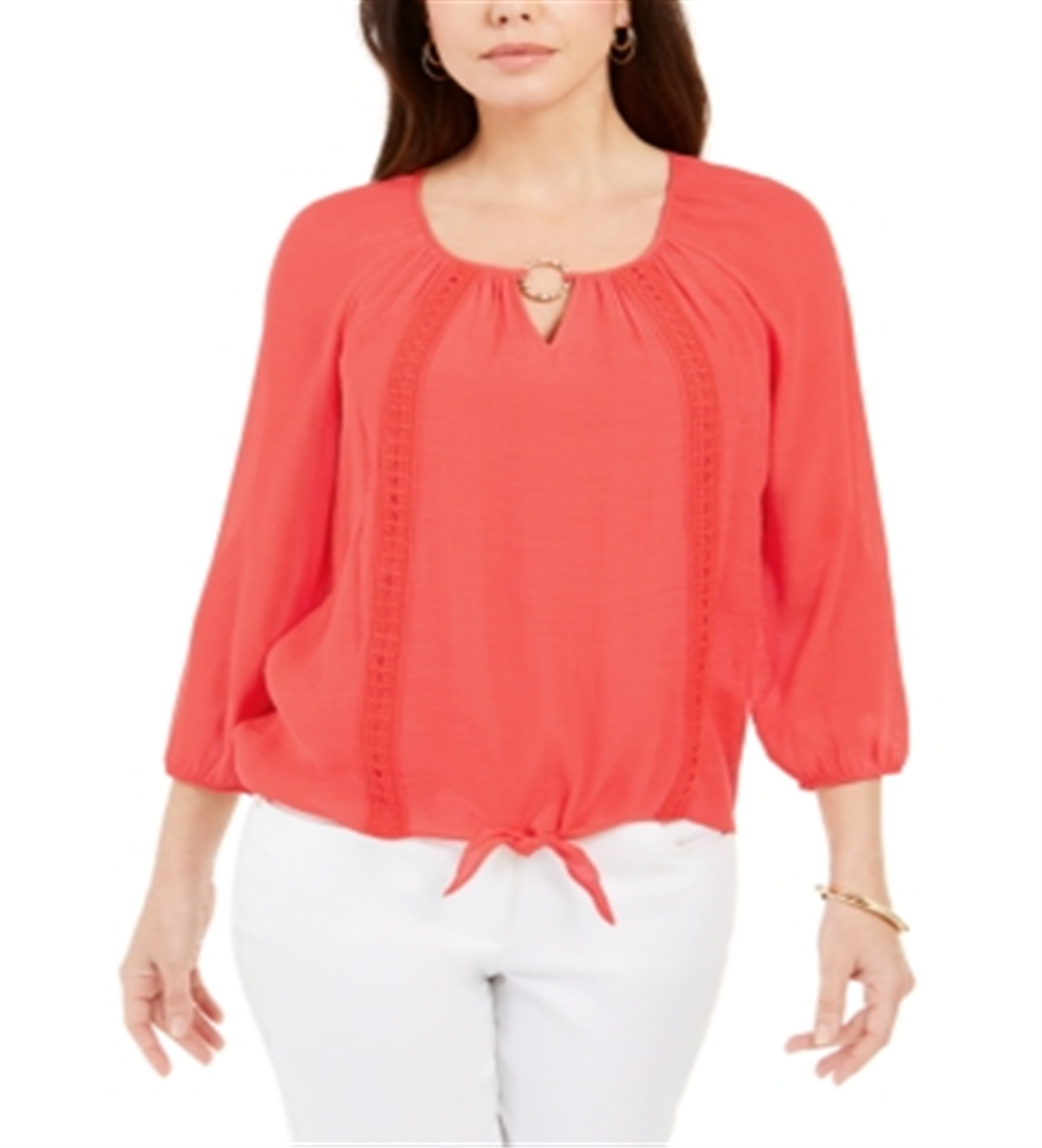 JM Collection Women's Crochet Trim Tie Top Red Size Medium