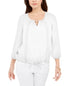 JM Collection Women's Crochet Trim Tie Top White Size Medium