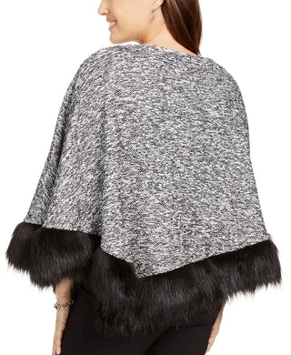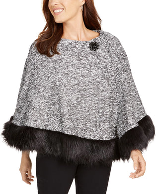 JM Collection Women's Petite Faux-Fur-Trim Poncho Black Size Petite Large