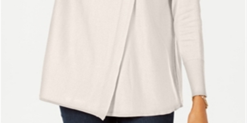 Add a sophisticated staple to your wardrobe with this cowl-neck sweater from JM Collection| Faux-wrap styling and lace-up neck detail increase its appeal