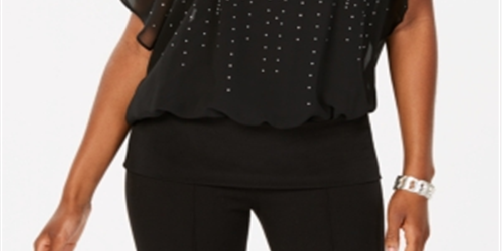 JM Collection Women's Jewel-Embellished Top Black Size XS