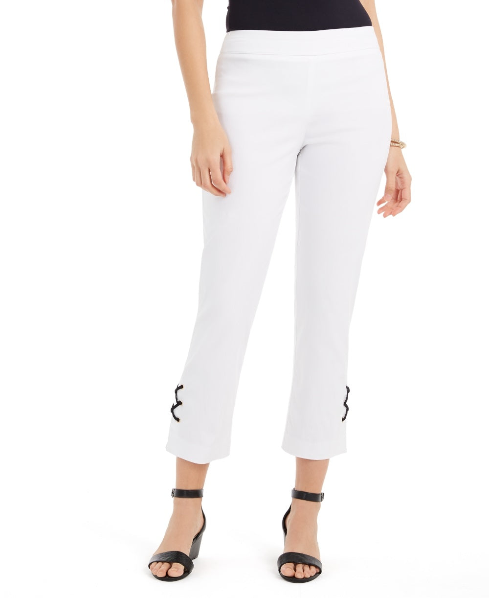 Approx. inseam; 27|Rise; approx. 11|Due to generous sizing; we suggest sizing down for the perfect fit|Pull-on style|Tummy control panel at front; comfort waistband; lace-up grommet detail at cuffs