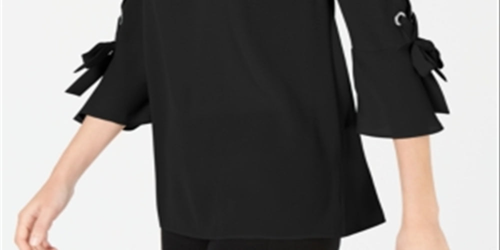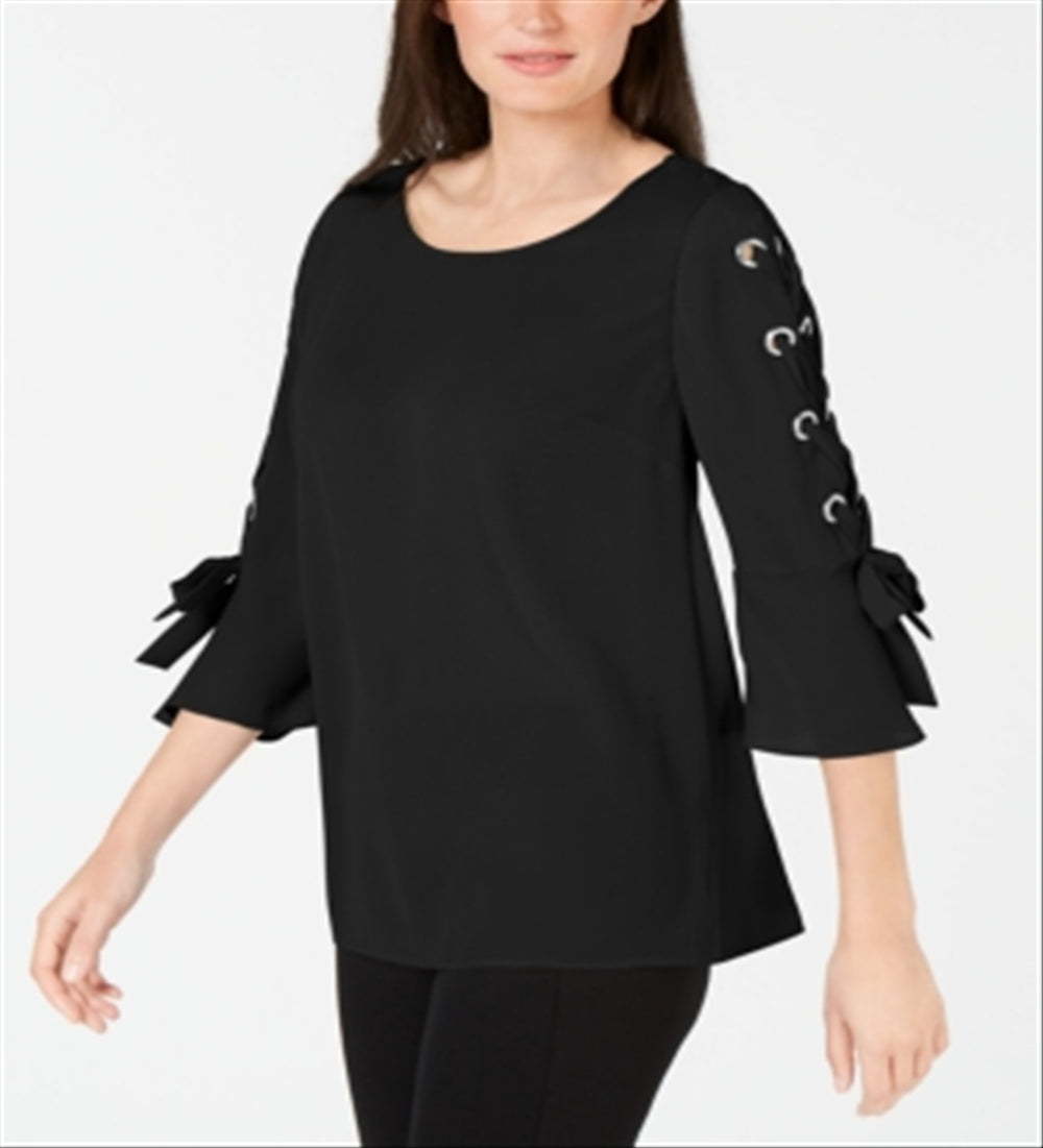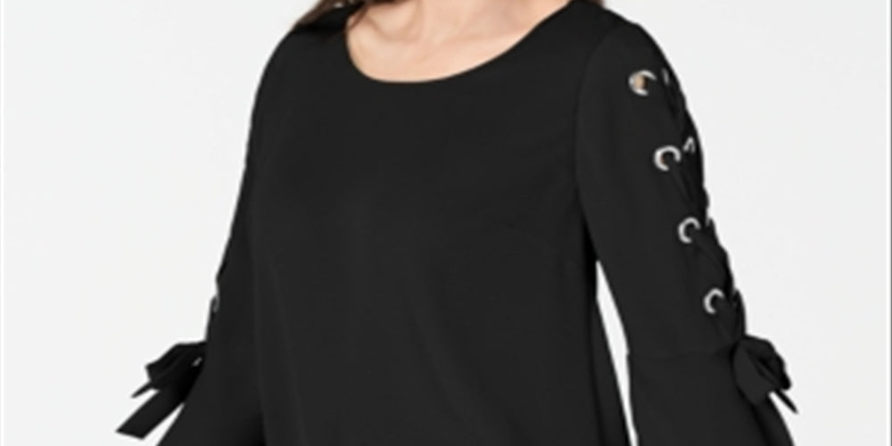 JM Collection Women's Laced Grommet Sleeve Top Black Size Large