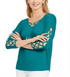 A versatile piece with fresh flair| this relaxed top from JM Collection is updated with slender straps at the neckline and sleeves.| Relaxed fit; approx. 26-1/2 long| Due to generous sizing| we suggest sizing down for the perfect fit| Scoop neckline with strappy detail