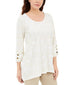 JM Collection Women's Metallic Print Buttoned Cuff Top White Size Large