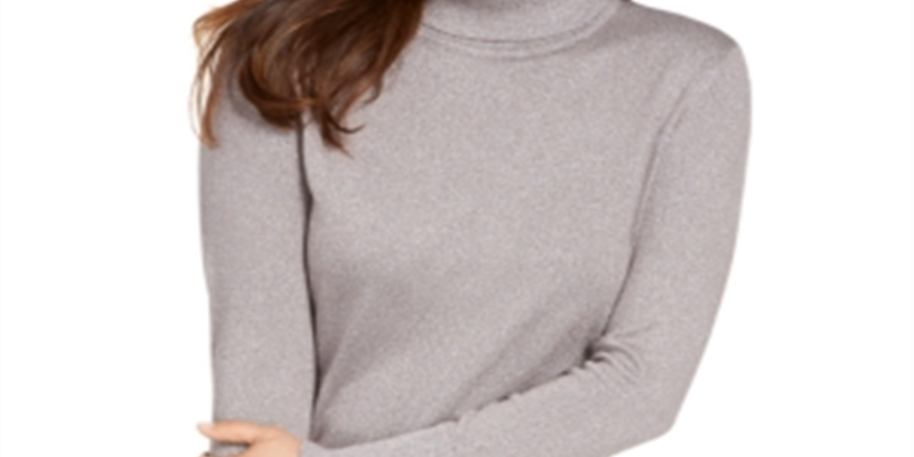 JM Collection Women's Metallic Turtleneck Stud Cuff Sweater Silver Size XX-Large