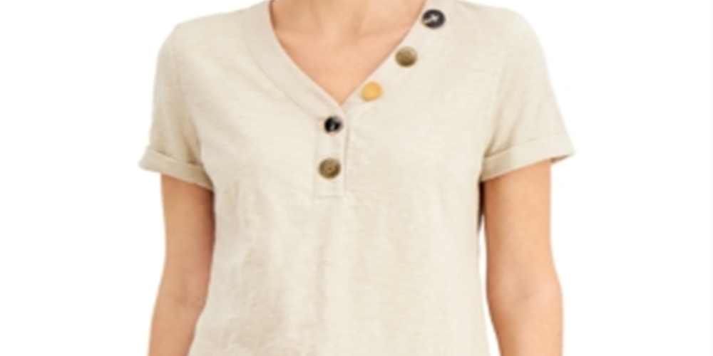 JM Collection Women's Mixed Button Top Brown Size X-Small