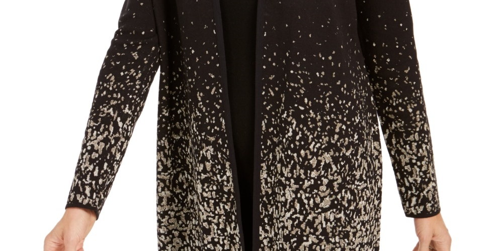 JM Collection Women's Ombre Jacquard Coatigan Black Size Petite Medium