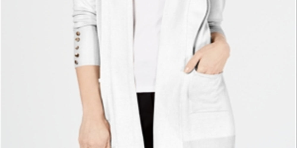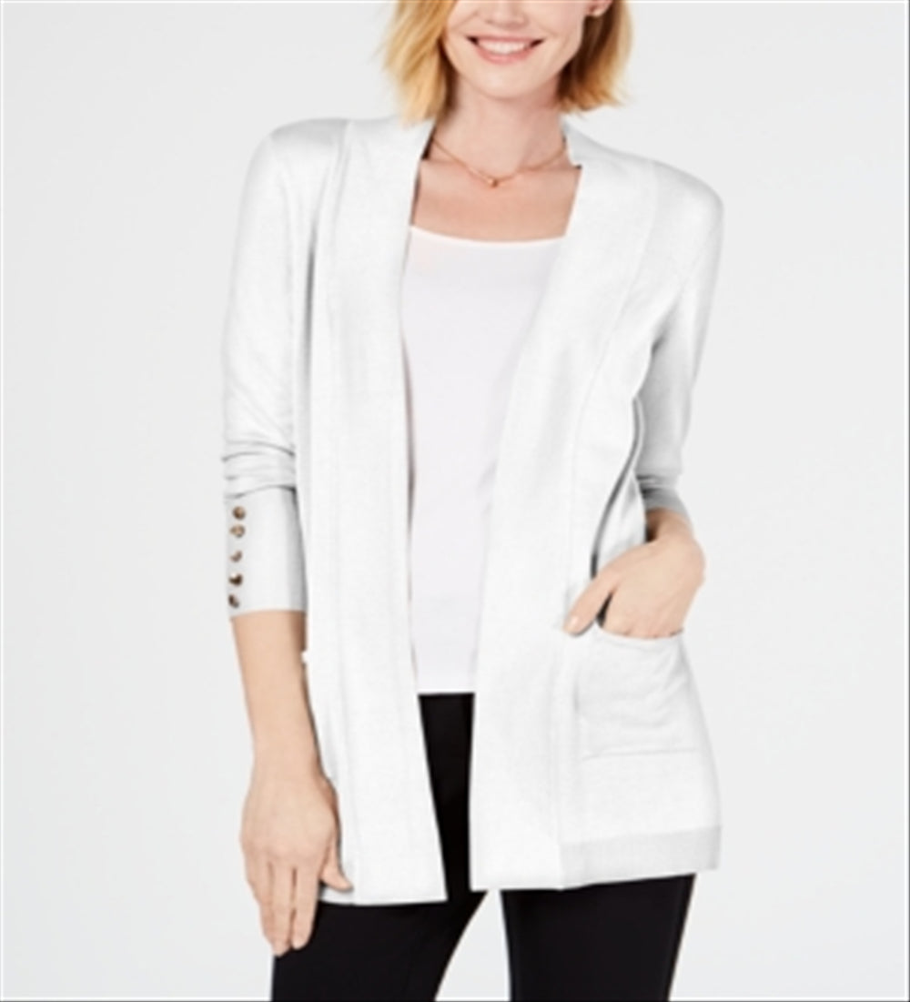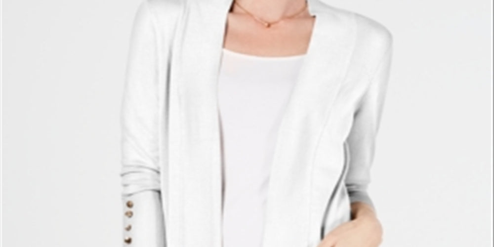JM Collection Women's Open Front Cardigan White Size Petite S