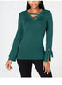 JM Collection Women's Petite Grommet-Trim V-Neck Top Green Size PL