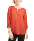 JM Collection Women's Petite Rivet-Front Pleated-Back Top Red PS