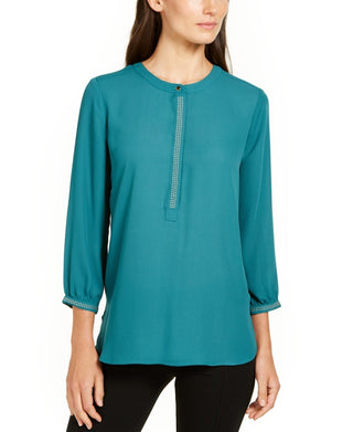 JM Collection Women's Pleated-Back Blouse Green Size Large