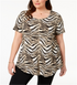 JM Collection Women's Plus Animal Print Top Brown/anmal Journey Size 0X