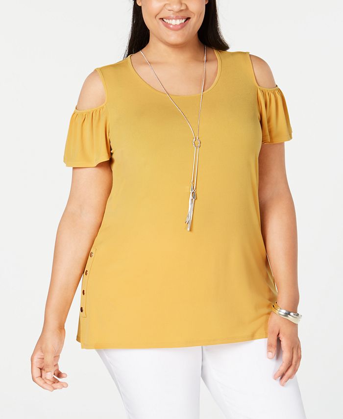JM Collection Women's Plus Flutter Sleeve Cold-Shoulder Necklace Top Yellow Size 3X