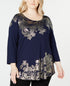 JM Collection Women's Plus Metallic Print Top Blue Size 0X