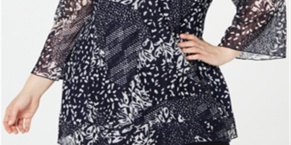 JM Collection Women's Plus Printed Lace Tunic Blue Size 3X